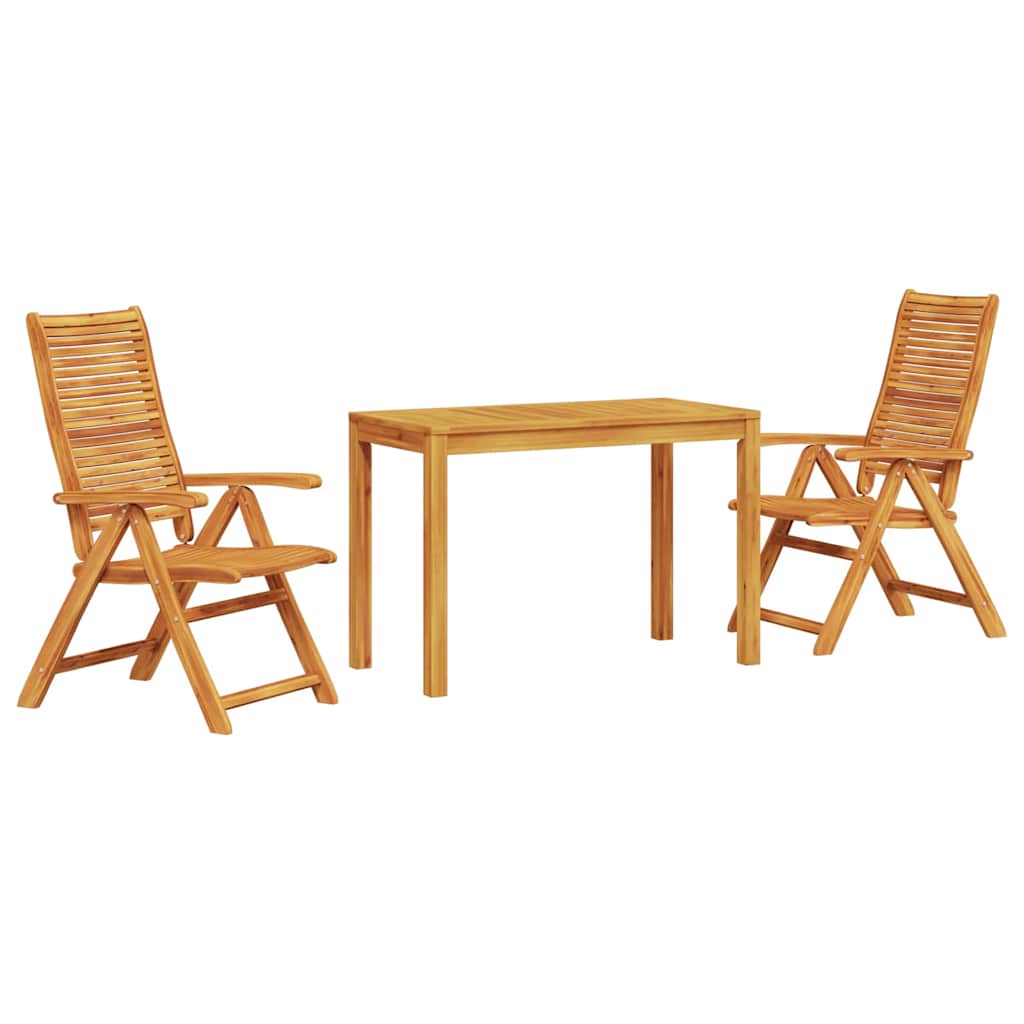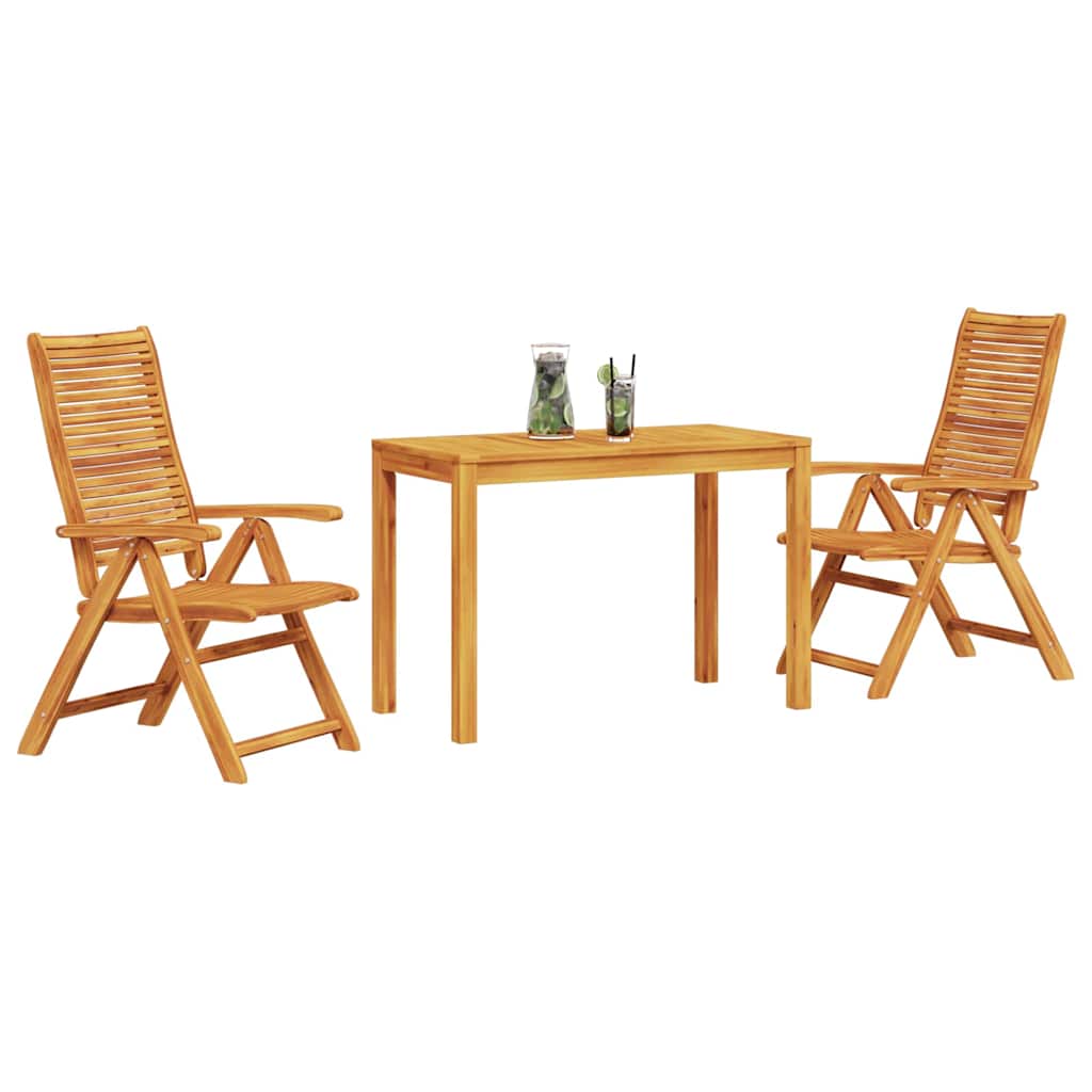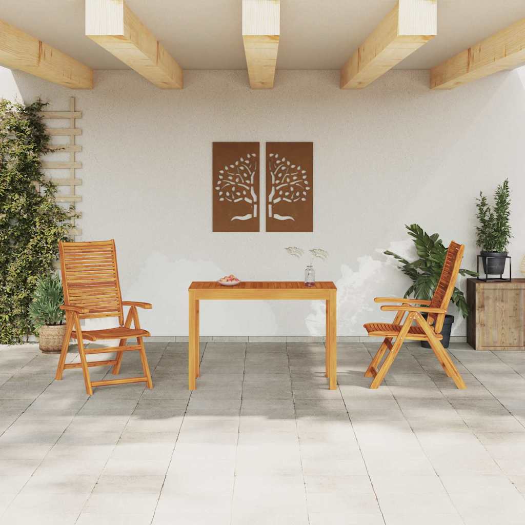 - Massief acaciahout: Gemaakt van hoogwaardige, dichte acaciahout dat bekend staat om zijn lange levensduur en weerbestendigheid. Dit hout houdt de set sterk, ziet er goed uit en presteert jarenlang.