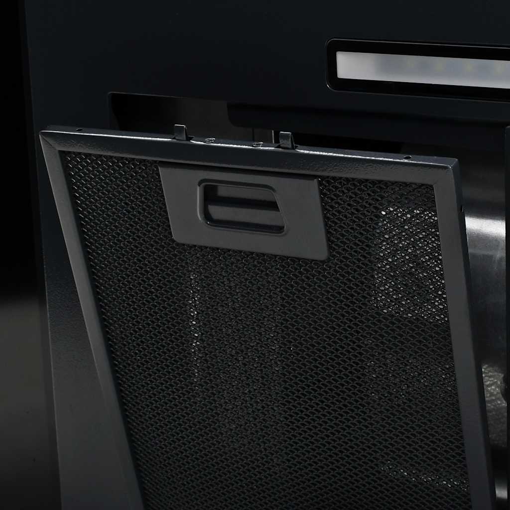 De afzuigkap is uitgerust met twee 3-laags wasbare aluminium vetfilters om de binnenkant van de afzuigkap en de uitlaatpijp tegen vet te beschermen. De ingebouwde, vingeraanrakingsgevoelige bedieningselementen, het LCD-display en de LED-lampjes maken de afzuigkap gemakkelijk te gebruiken en koken eenvoudiger. De kap heeft 3 variabele snelheden om ervoor te zorgen dat je volledige controle hebt over de extractiesnelheid. Een koolstoffilter dat de lucht helpt zuiveren en de gereinigde lucht terug in de keuken zal brengen, is ook inbegrepen. De meegeleverde uitlaatpijp leidt de afgezogen kookgeuren naar buiten. De afzuigkap is eenvoudig te monteren.