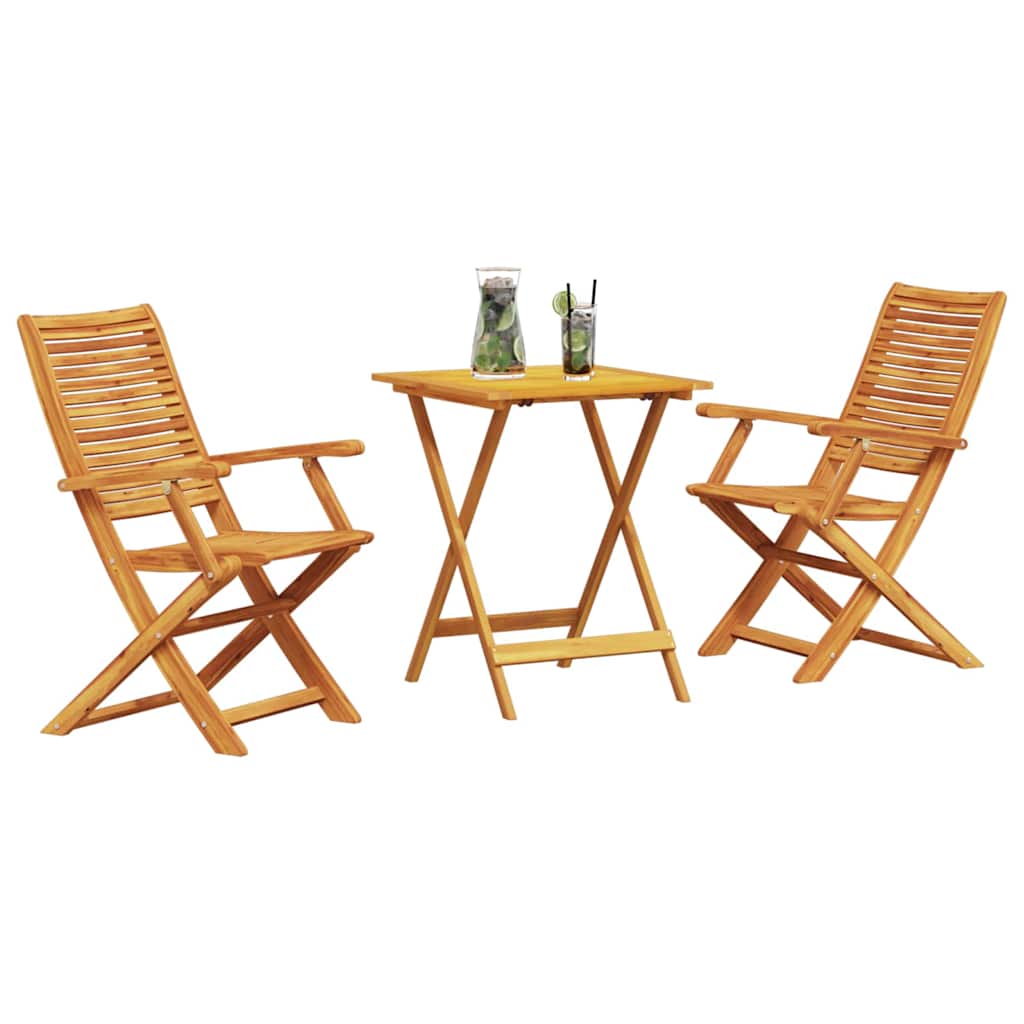 - Massief acaciahout: Deze rustieke opvouwbare bistroset is gemaakt van massief acaciahout en heeft een organische uitstraling. Het is super duurzaam, perfect voor buitengebruik en kan goed tegen dagelijks gebruik en slecht weer. De geoliede afwerking maakt het niet alleen mooier, maar helpt ook het hout te beschermen tegen vocht.