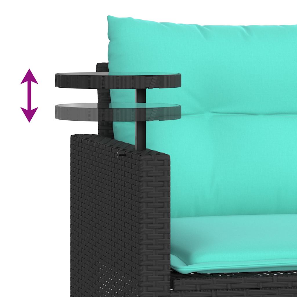 - Materiaal: PE-rotan, gepoedercoat staal, gehard glas