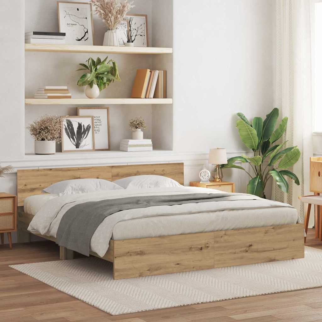 - Laag Onderhoud: Het bedframe schoonhouden is makkelijk - een snelle afname met een vochtige doek is voldoende. Het gladde oppervlak van het gefabriceerde hout maakt het schoonmaken eenvoudig, zodat je meer tijd hebt om van je ruimte te genieten. Dit maakt dat het langer fris blijft lijken.