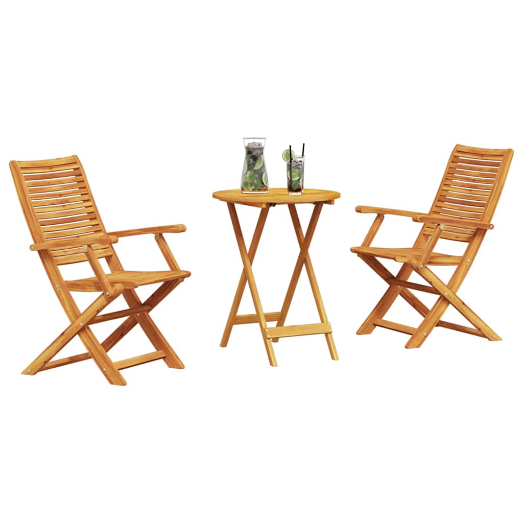 - Massief acaciahout: Deze rustieke opvouwbare bistroset is gemaakt van massief acaciahout en heeft een organische uitstraling. Het is super duurzaam, perfect voor buitengebruik en kan goed tegen dagelijks gebruik en slecht weer. De geoliede afwerking maakt het niet alleen mooier, maar helpt ook het hout te beschermen tegen vocht.