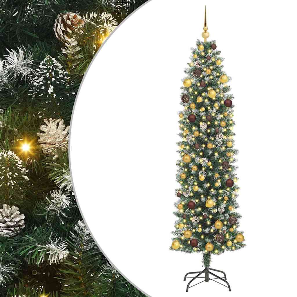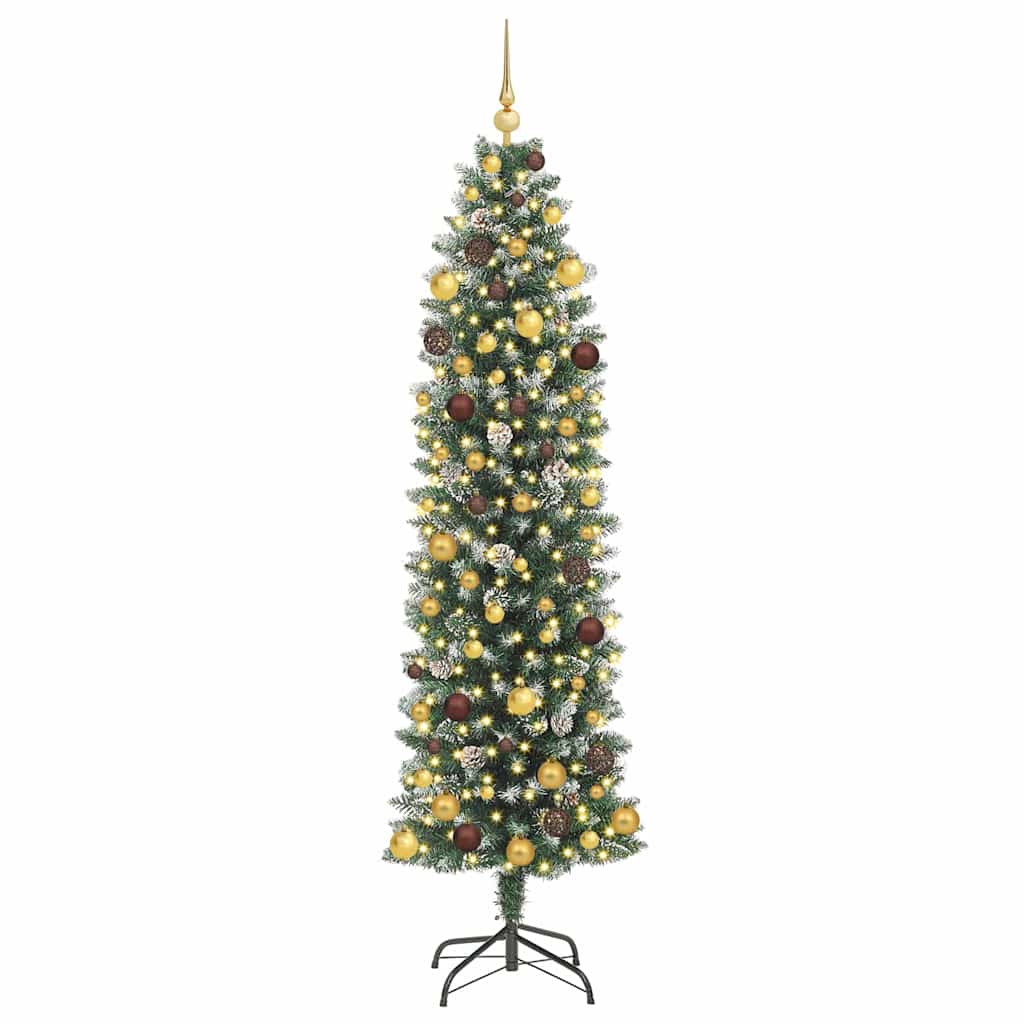 Deze kunststof smalle kerstboom is de perfecte mix van moderne stijl en levensechte uitstraling, waardoor hij een leuke aanvulling is voor je seizoensdecoratie. Zijn slanke kegelvorm past in elke woonkamer, ideaal voor kleine ruimtes of appartementen. Met een stevige PVC- en metalen constructie imiteert hij niet alleen de natuurlijke schoonheid van een echte den, maar is hij ook sterk genoeg voor elk seizoen. Geniet van de warme gloed van de LED-lichtjes, die zorgen voor een feestelijke sfeer bij familiebijeenkomsten, feesten en gezellige avonden.