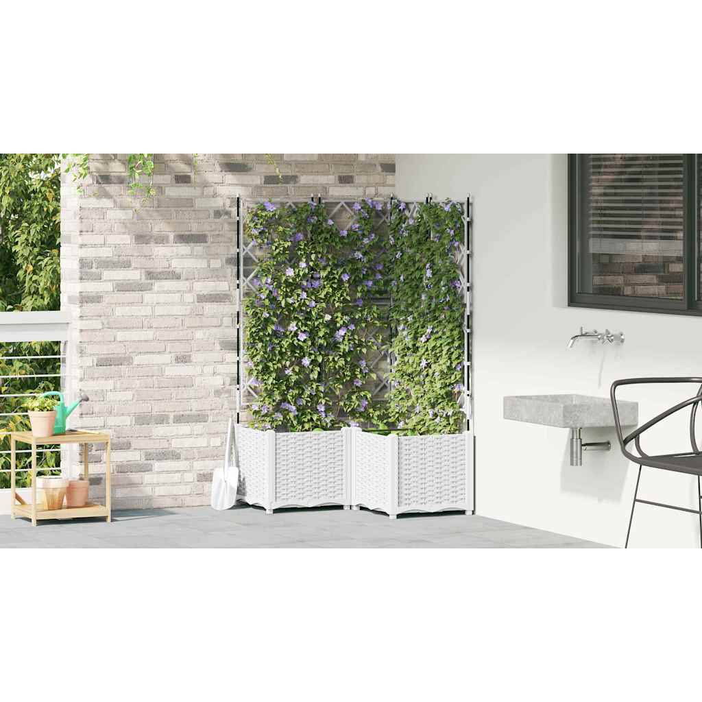 Check deze moderne tuinpot met trellis! Hij maakt zowel je buitenruimte functioneler als mooier. De strakke rechthoekige vorm geeft een hedendaagse vibe en de matte afwerking past perfect bij de eenvoud van modern design. Het is echt ideaal voor enthousiaste tuinierders of iedereen die zijn huis wat opvrolijkt; de heldere planten komen mooi tot hun recht tegen de niet-reflecterende achtergrond, wat een leuke sfeer toevoegt aan je tuin of terras.