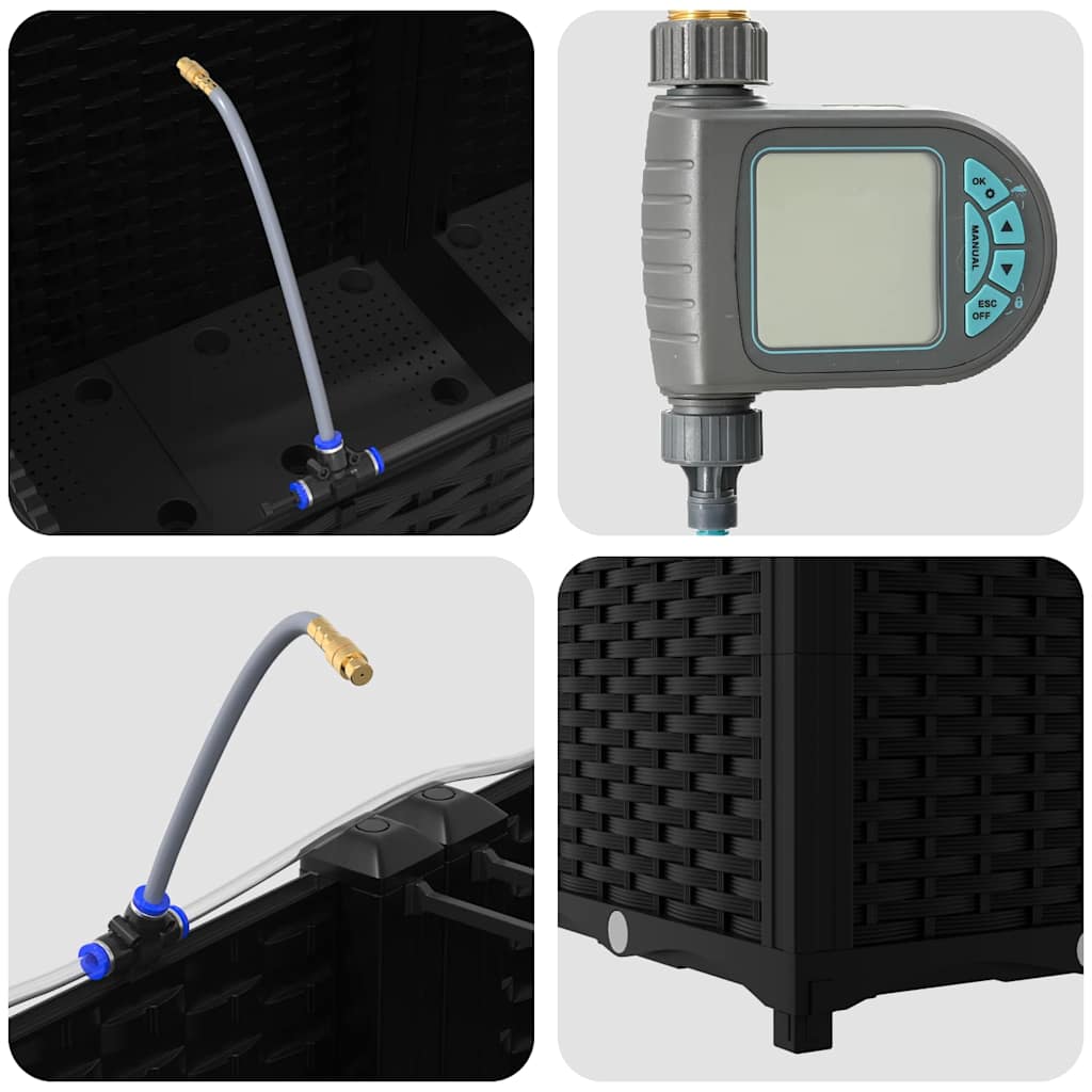 Deze tuinplant met irrigatie is een moderne oplossing ontworpen voor buitensporters. De slanke rechthoekige vorm, gecombineerd met een geweven patroon, voegt een hedendaagse touch toe aan je tuin of terras. Ideaal voor het planten van een verscheidenheid aan flora, biedt deze planter een stevige, esthetisch verantwoorde basis voor je tuinieraspiraties. Het mengt naadloos in elke tuinversiering en biedt een functionele maar stijlvolle optie voor thuistuinierders. De planter is perfect voor wie zijn buitenruimte wil verbeteren met weelderig groen, verrijkt door een innovatief irrigatiesysteem dat gezonde plantengroei bevordert. Het verhoogde ontwerp geeft een verfijnde elegantie en zorgt voor praktische bruikbaarheid, waardoor dit stuk een must-have is voor tuinliefhebbers.