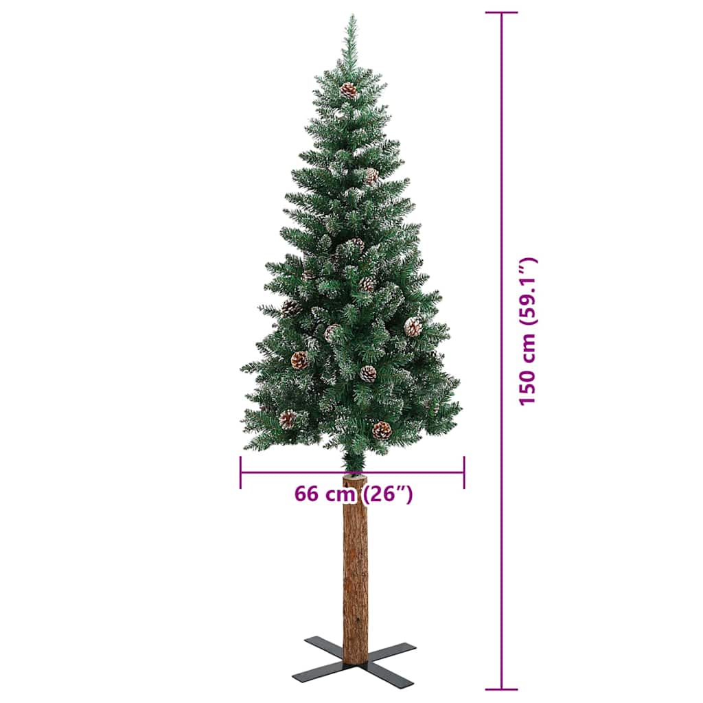 - Decoratief met dennenappels en ornamentballen, Realistische takkenpunten met bevroren sneeuw, Echte houten stam