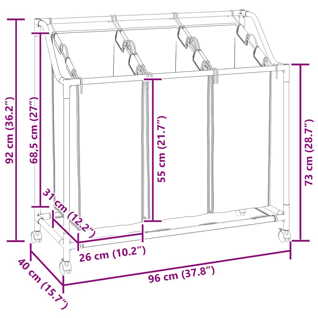 - Ruime opbergruimte: Deze wasmand heeft 3 waszakken, zodat je je kleding op kleur en materiaal kunt opbergen, zodat je kleding goed georganiseerd is en je tijd bespaart.