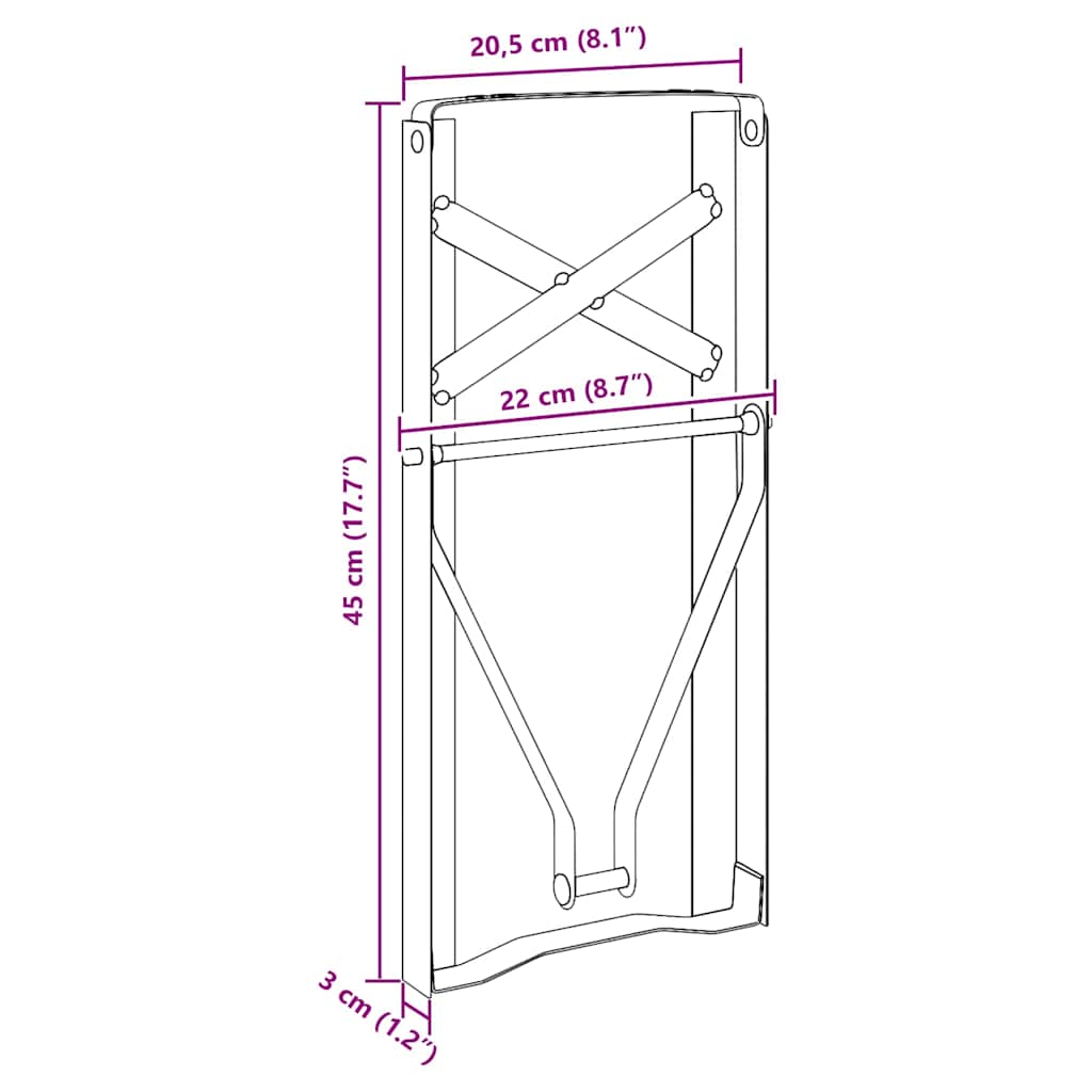 - Algemene afmetingen: 20.5 x 3 x 45 cm (L x B x H)