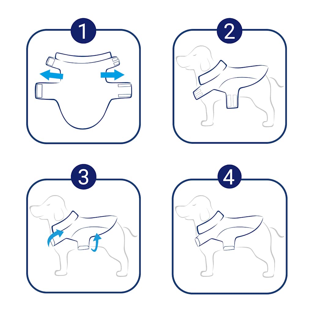 - Makkelijk te dragen: Dankzij de klittenbandsluitingen is deze hondenregenjas gemakkelijk aan en uit te trekken. Open de sluitingen, verstel ze voor een goede pasvorm en je bent klaar.