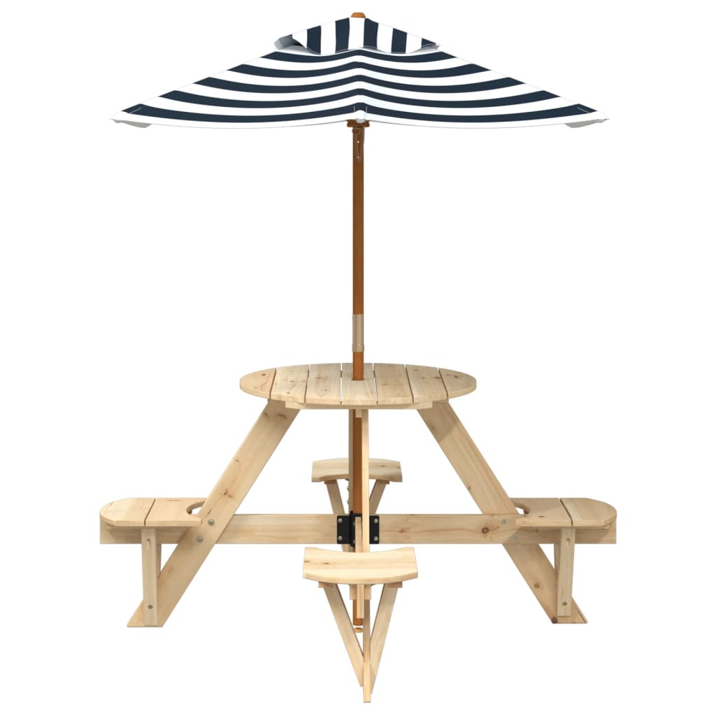Deze picknicktafel met parasol is perfect voor terrassen, tuinen en buitenruimtes en biedt een comfortabele en uitnodigende plek voor je kinderen en hun vriendjes om te ontspannen en te genieten.