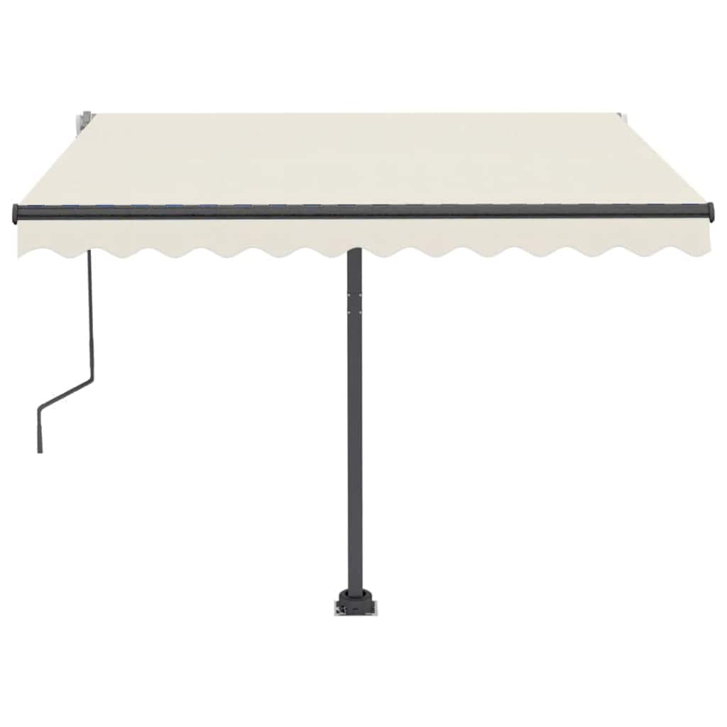 Deze buitenluifel heeft een roestbestendig, gepoedercoat aluminium frame waardoor hij lichtgewicht en toch stevig is. Het zonnescherm is gemaakt van polyester met een hoge dichtheid en een PU-coating, waardoor het uv- en waterbestendig is. De hoek en hoogte kunnen worden aangepast aan je specifieke behoeften. Je kan de vrijstaande luifel openen en intrekken met de lange handslinger. De stevige basis kan 360 graden draaien voor maximale verstelbaarheid.