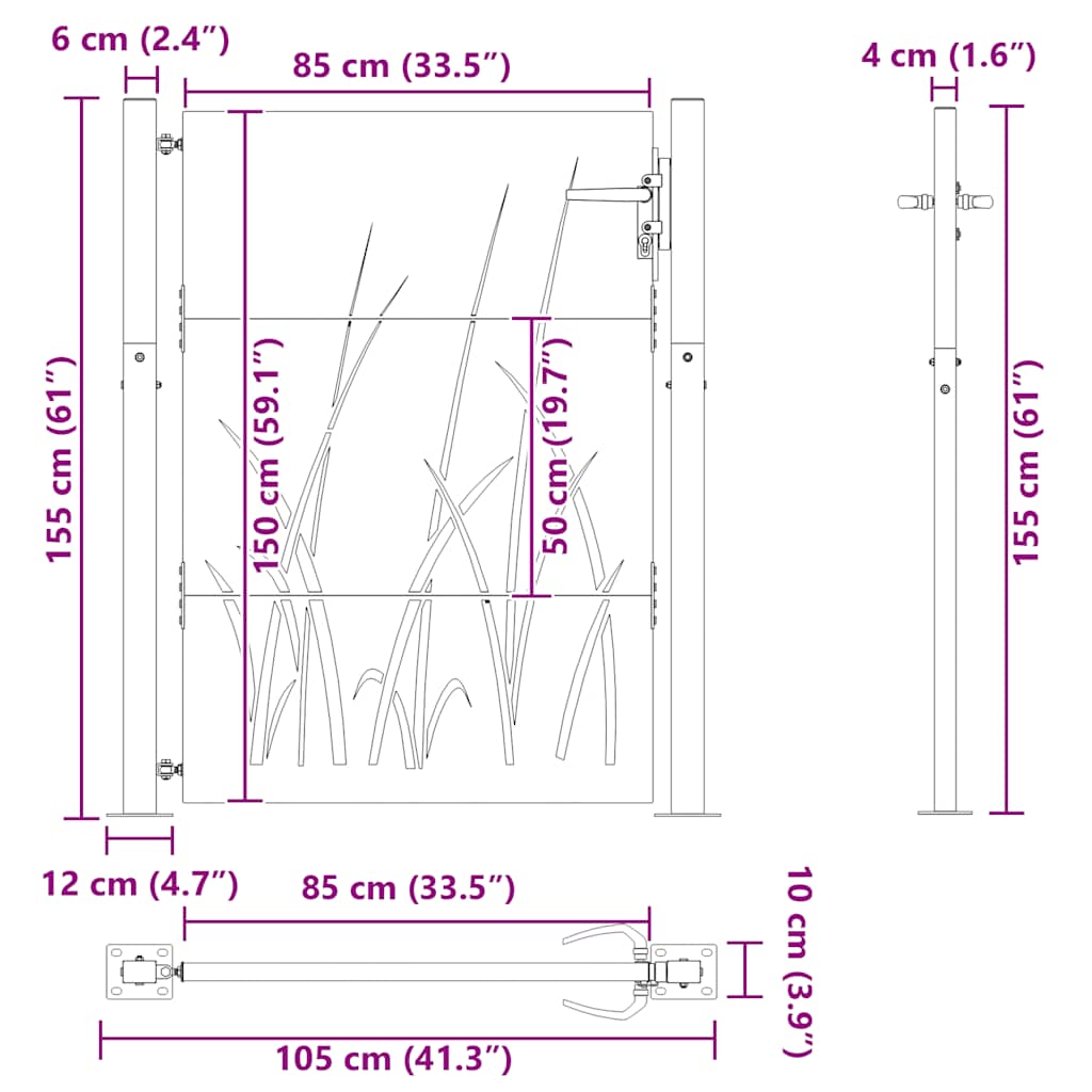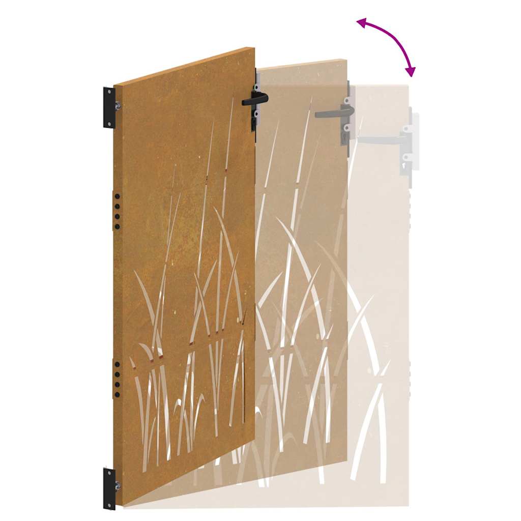 - Duurzaam materiaal: de metalen poort is van cortenstaal gemaakt. Cortenstaal wordt ook wel weerbestendig staal genoemd. Dit is van nature corrosiewerend. Het staal ontwikkelt een roestige beschermlaag tegen corrosie wanneer het voor het eerst wordt blootgesteld aan atmosferische omstandigheden. Je hoeft het dus niet te schilderen. Hierdoor kun je besparen op onderhouds- en reparatiekosten. De kenmerkende bruine kleur op het cortenstaal is een echte blikvanger. Ook is cortenstaal uitzonderlijk duurzaam en gaat het jarenlang mee.