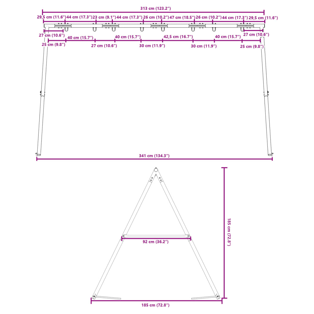 - 2 installatiemogelijkheden: dit schommelframe biedt twee opties voor het ophangen van je schommel: het installeren van 4 enkele schommelzitjes of 1 schotelvormige schommel en 2 schommelzitjes.