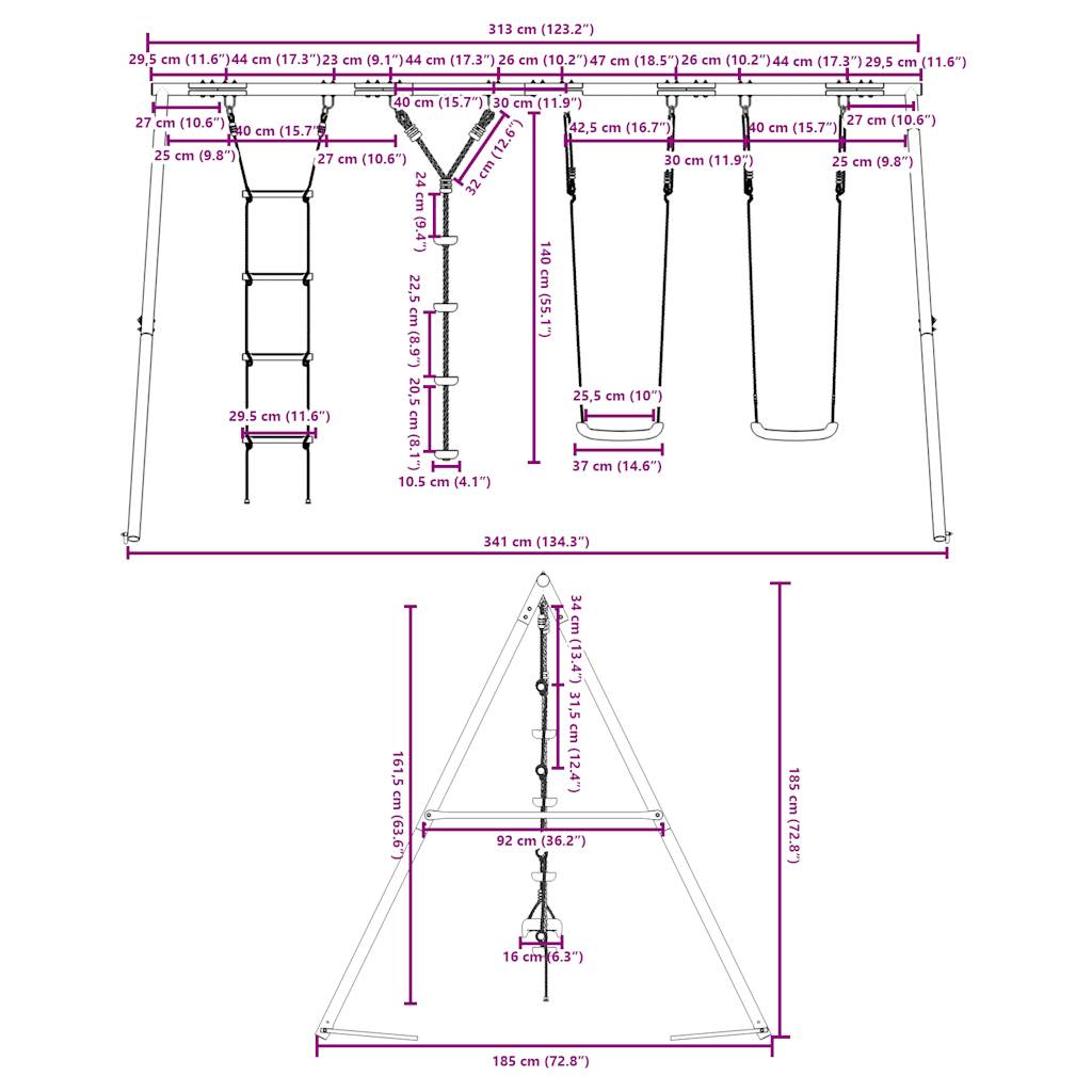 - Breed toepasbaar: dit schommelframe kan op verschillende locaties worden geplaatst, zoals in tuinen, bij kinderdagverblijven, in speeltuinen en meer.