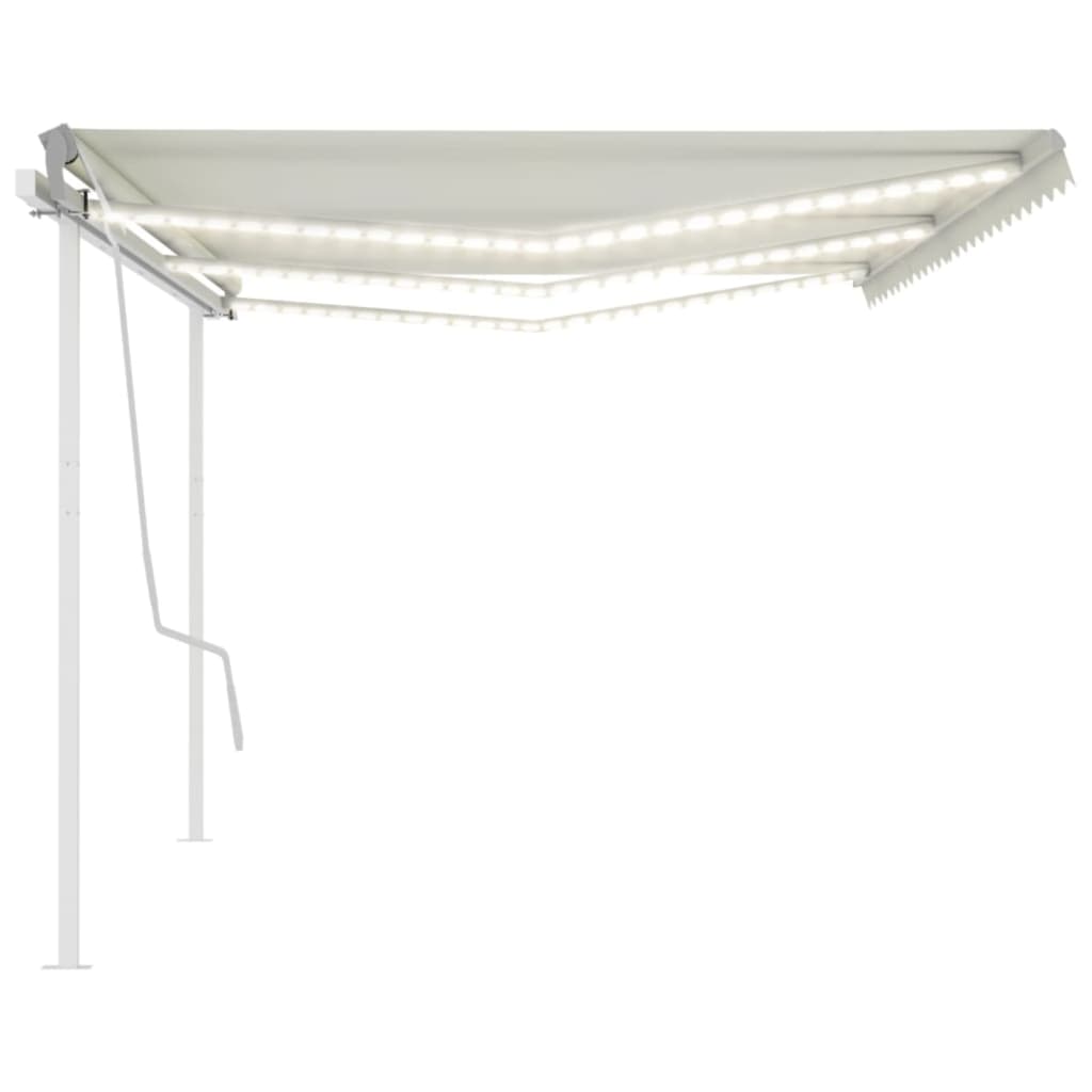 Deze buitenluifel heeft een roestbestendig, gepoedercoat aluminium frame waardoor hij lichtgewicht en toch stevig is. De sterke ijzeren palen maken het geheel stabiel. Het zonnescherm is gemaakt van polyester met een hoge dichtheid en een PU-coating, waardoor het uv- en waterbestendig is. De hoek en hoogte kunnen worden aangepast aan je specifieke behoeften. Je kan de luifel openen en intrekken met de lange handslinger. De solar LED''s bieden je ''s nachts energie-efficiënte verlichting.