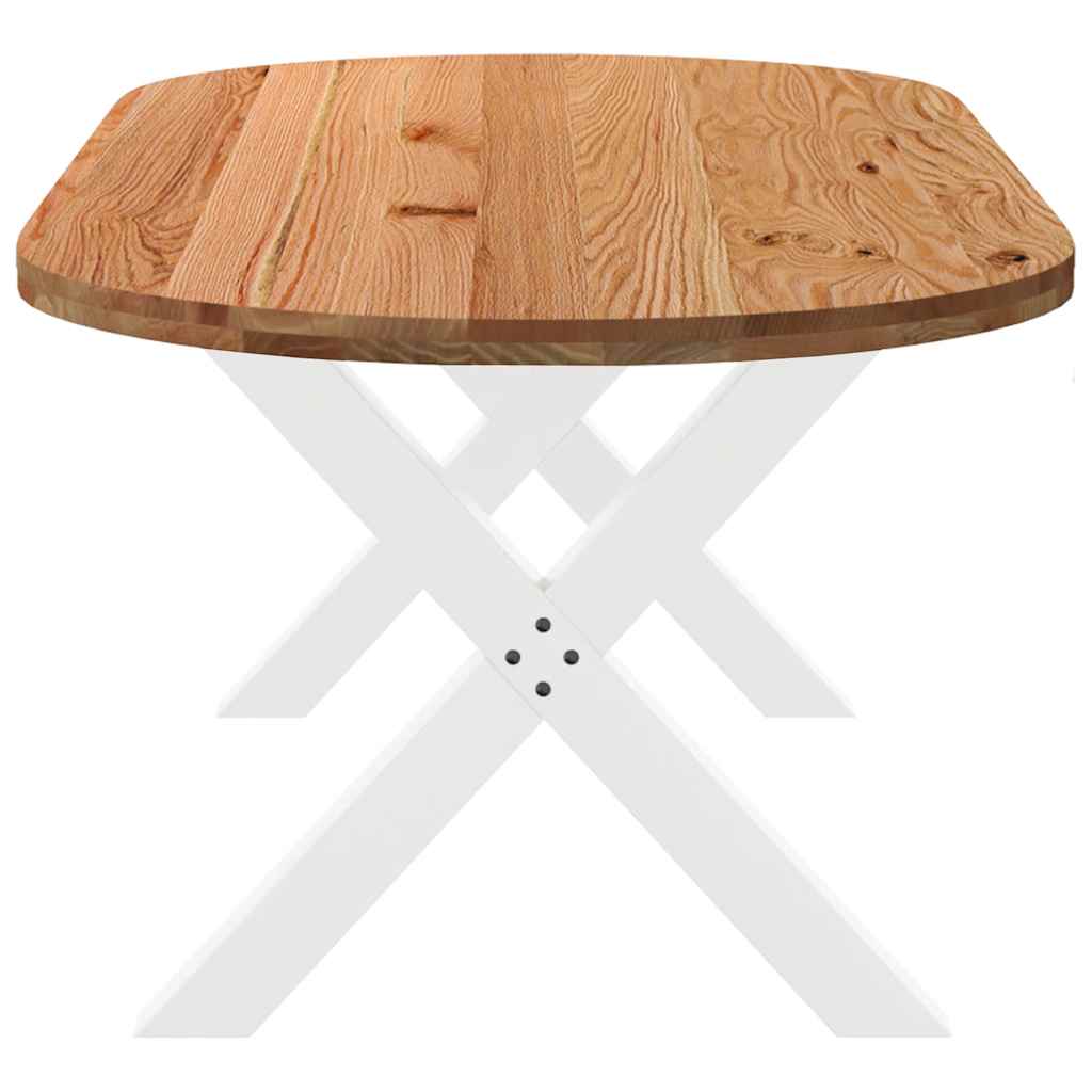 - Het tafelblad heeft een dikte van 4 cm langs de randen voor een robuuste uitstraling en een dikte van 2 cm in het midden om het houtverbruik en het totale gewicht te verminderen.