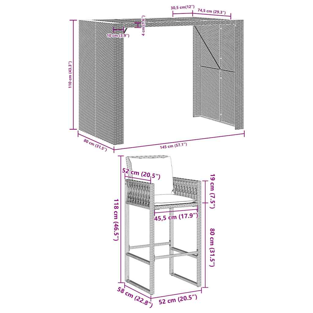 Deze trendy tuinbarset die zowel stijl als functie combineert, is absoluut bedoeld om het middelpunt te zijn van je tuin, terras en elke andere leefruimte.