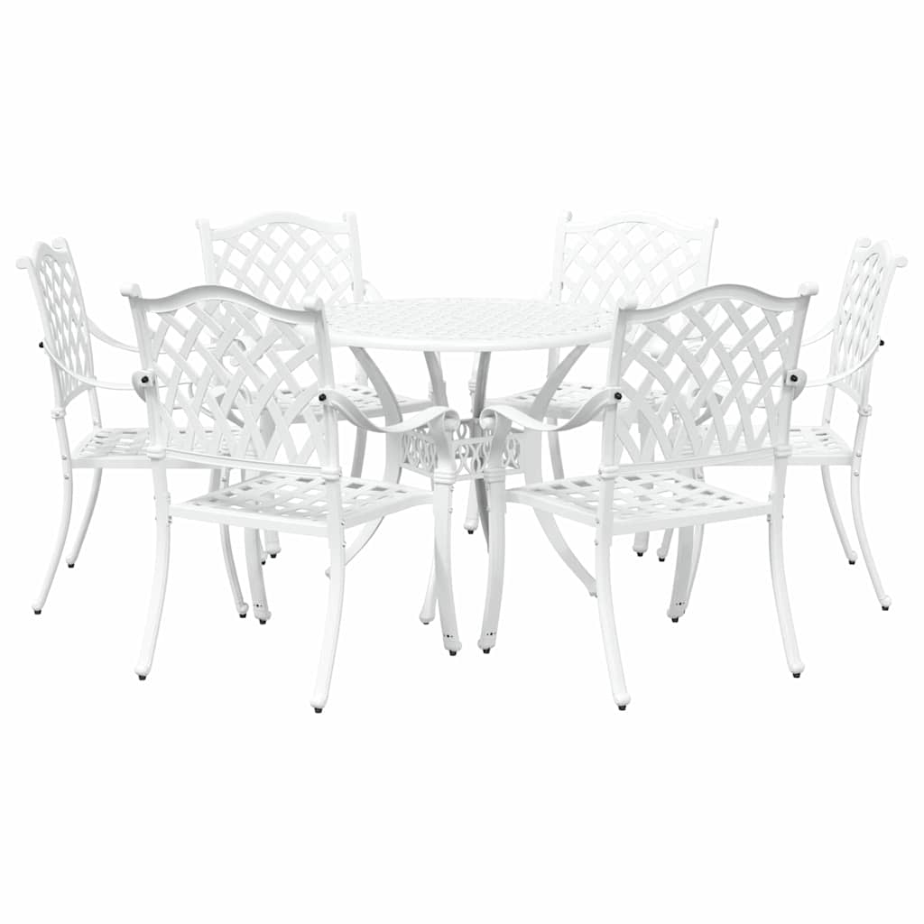- Kwaliteitsmaterialen: Gemaakt van sterk gegoten aluminium, deze eetset is gebouwd om lang mee te gaan, weerstaat slijtage en blijft mooi, zelfs bij wisselend weer. Het aluminium frame zorgt voor stabiliteit en een mooi uiterlijk, wat bijdraagt aan de duurzaamheid.