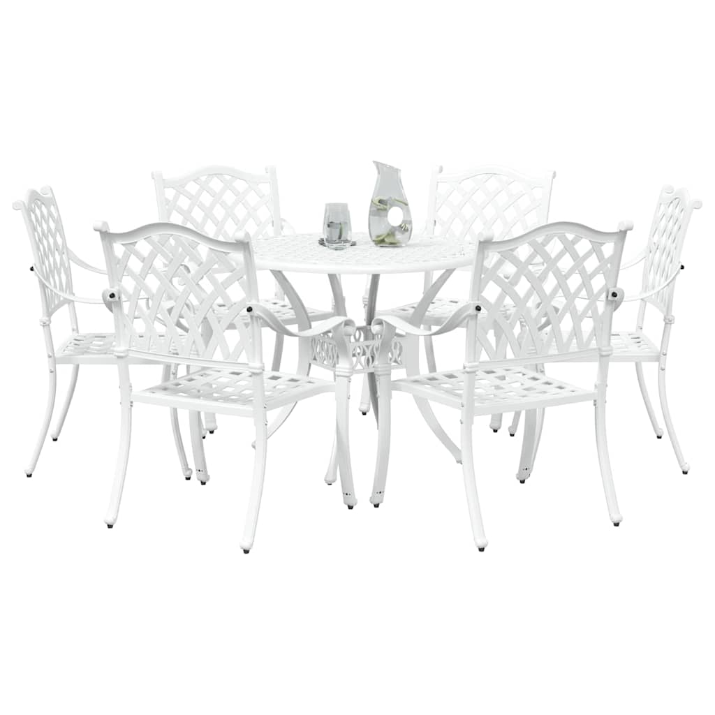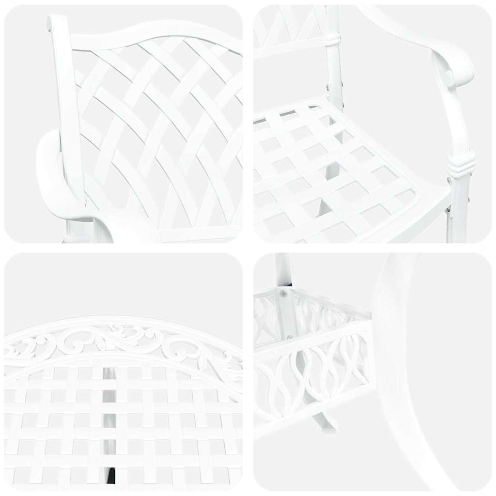 Deze mooie tuinset is gemaakt van sterk gegoten aluminium, wat het een klassieke look geeft die perfect past in je tuin of op je balkon. Het heeft klassieke details die wat verfijning meebrengen, waardoor het een prachtig middelpunt is voor buiten diners en bijeenkomsten in de lente en zomer. Stel je voor dat je gezellige avonden hebt met vrienden en familie, dineren onder de sterren, omringd door deze mooie mix van stijl en praktische gebruik!