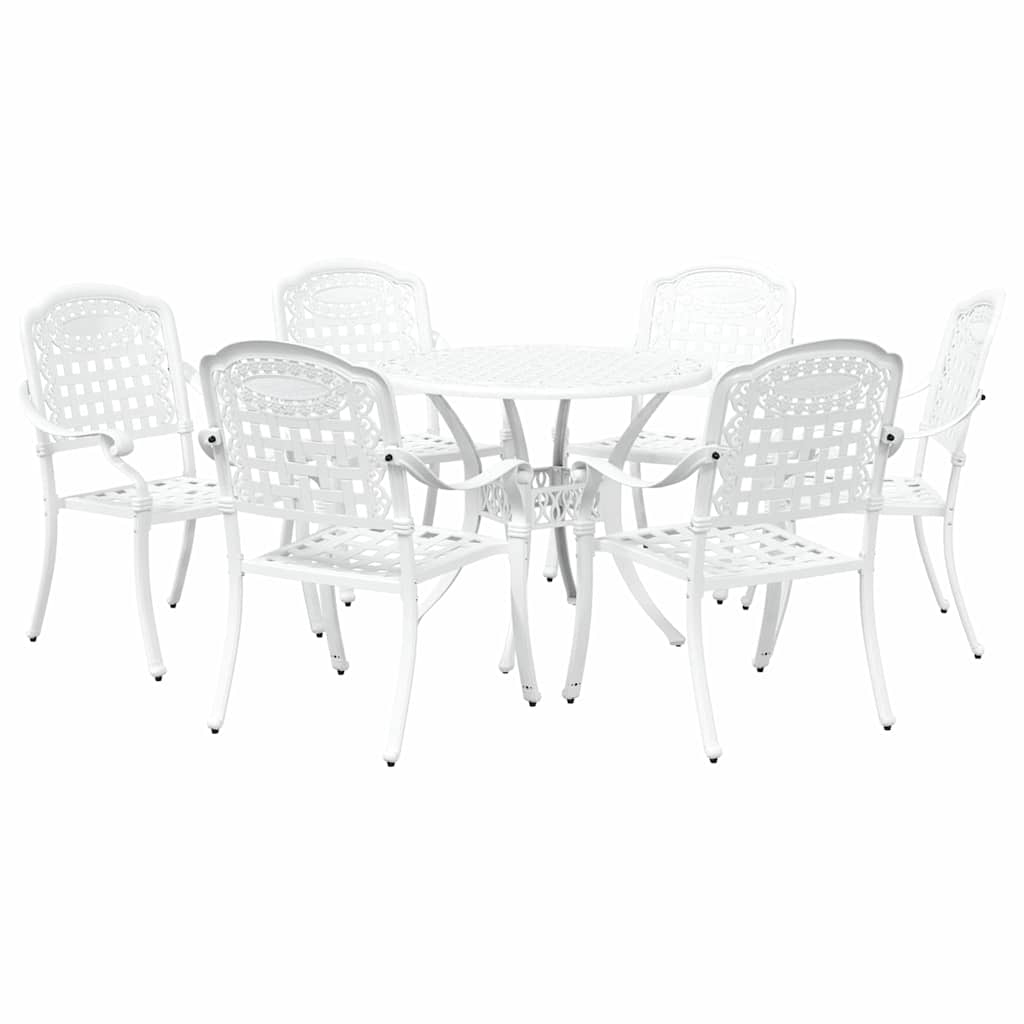 Deze mooie tuinset is gemaakt van sterk gegoten aluminium, wat het een klassieke look geeft die perfect past in je tuin of op je balkon. Het heeft klassieke details die wat verfijning meebrengen, waardoor het een prachtig middelpunt is voor buiten diners en bijeenkomsten in de lente en zomer. Stel je voor dat je gezellige avonden hebt met vrienden en familie, dineren onder de sterren, omringd door deze mooie mix van stijl en praktische gebruik!