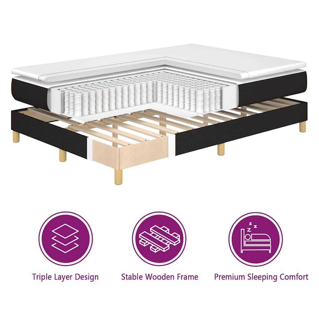 - Inbegrepen Componenten: Dit Boxspringbed komt met een stevig frame van engineered hout, een comfortabel matras met pocketveren voor ondersteuning, een medium-firm matras topper voor extra comfort en een hoofdbord bedekt met polyester en schuim voor stijl en comfort.