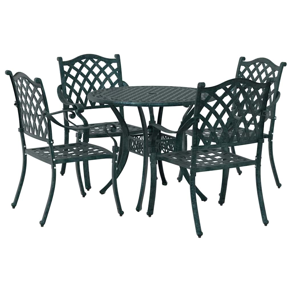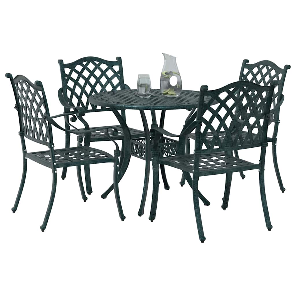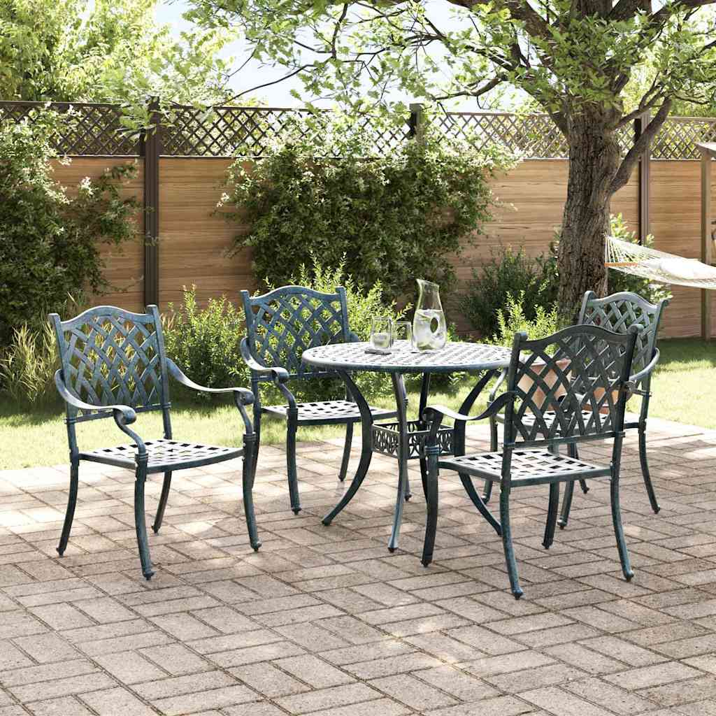 - Kwaliteitsmaterialen: Gemaakt van sterk gegoten aluminium, deze eetset is gebouwd om lang mee te gaan, weerstaat slijtage en blijft mooi, zelfs bij wisselend weer. Het aluminium frame zorgt voor stabiliteit en een mooi uiterlijk, wat bijdraagt aan de duurzaamheid.