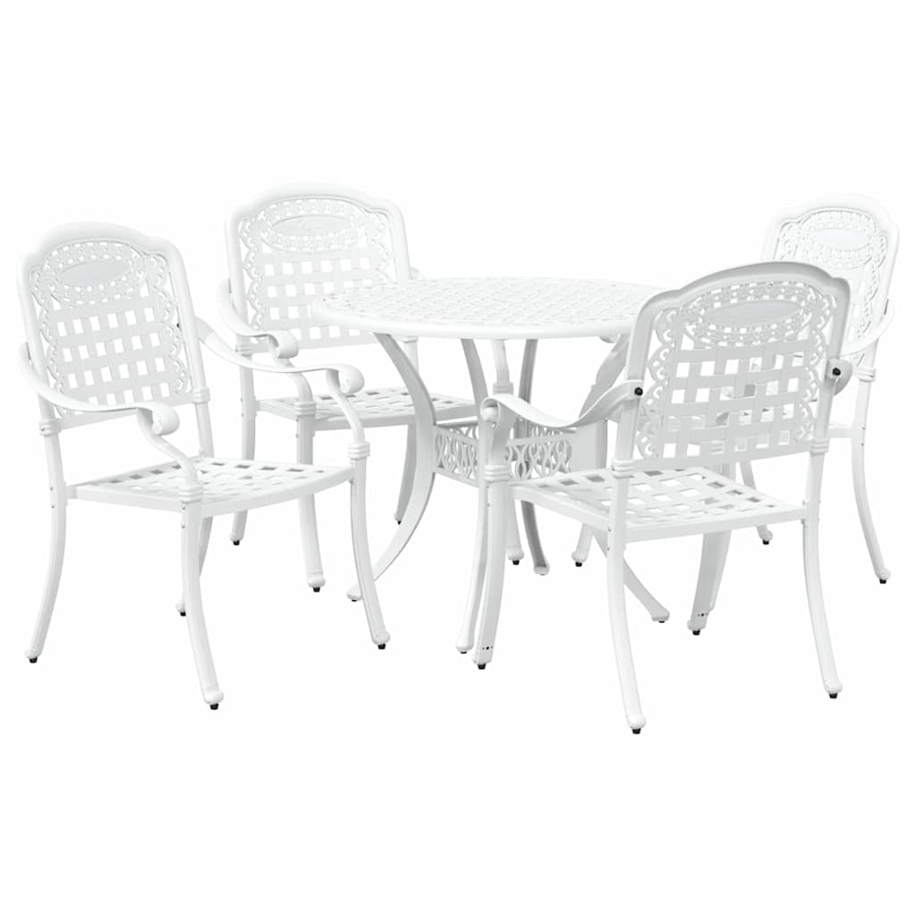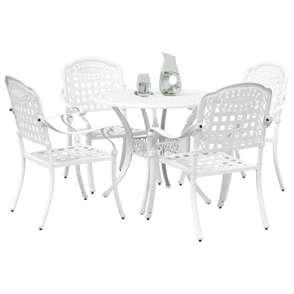 - Kwaliteitsmaterialen: Gemaakt van sterk gegoten aluminium, deze eetset is gebouwd om lang mee te gaan, weerstaat slijtage en blijft mooi, zelfs bij wisselend weer. Het aluminium frame zorgt voor stabiliteit en een mooi uiterlijk, wat bijdraagt aan de duurzaamheid.
