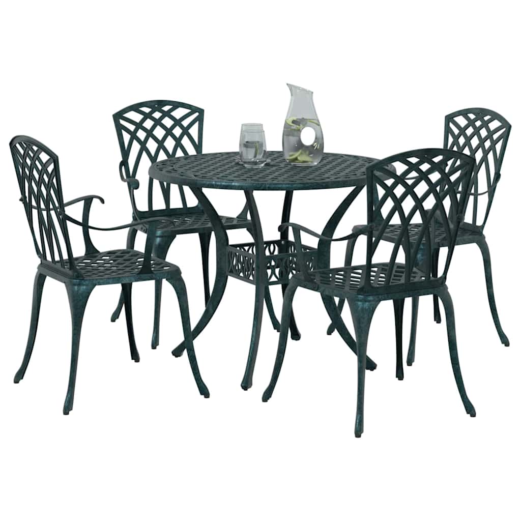 - Kwaliteitsmaterialen: Gemaakt van sterk gegoten aluminium, deze eetset is gebouwd om lang mee te gaan, weerstaat slijtage en blijft mooi, zelfs bij wisselend weer. Het aluminium frame zorgt voor stabiliteit en een mooi uiterlijk, wat bijdraagt aan de duurzaamheid.