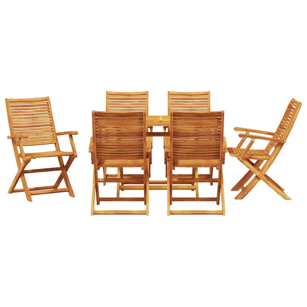Deze rustieke tuin eetset is een ideale aanvulling op elke buitenwoonruimte, ontworpen om tuinen en terrassen te transformeren in intieme eetruimtes. De moderne stijl van deze eetset, gekenmerkt door zijn minimalistische aantrekkingskracht en functionaliteit, past naadloos in verschillende ontwerpthema''s terwijl het een warme en uitnodigende sfeer creëert. Met precisie vervaardigd uit massief acaciahout, belichaamt deze set zowel esthetische aantrekkingskracht als robuuste vakmanschap, wat ervoor zorgt dat het bestand is tegen de elementen en een basis blijft voor zomergatherings. De rijke bruine tint voegt een vleugje elegantie van de natuur toe, wat een perfect decor vormt voor buiten dineren.