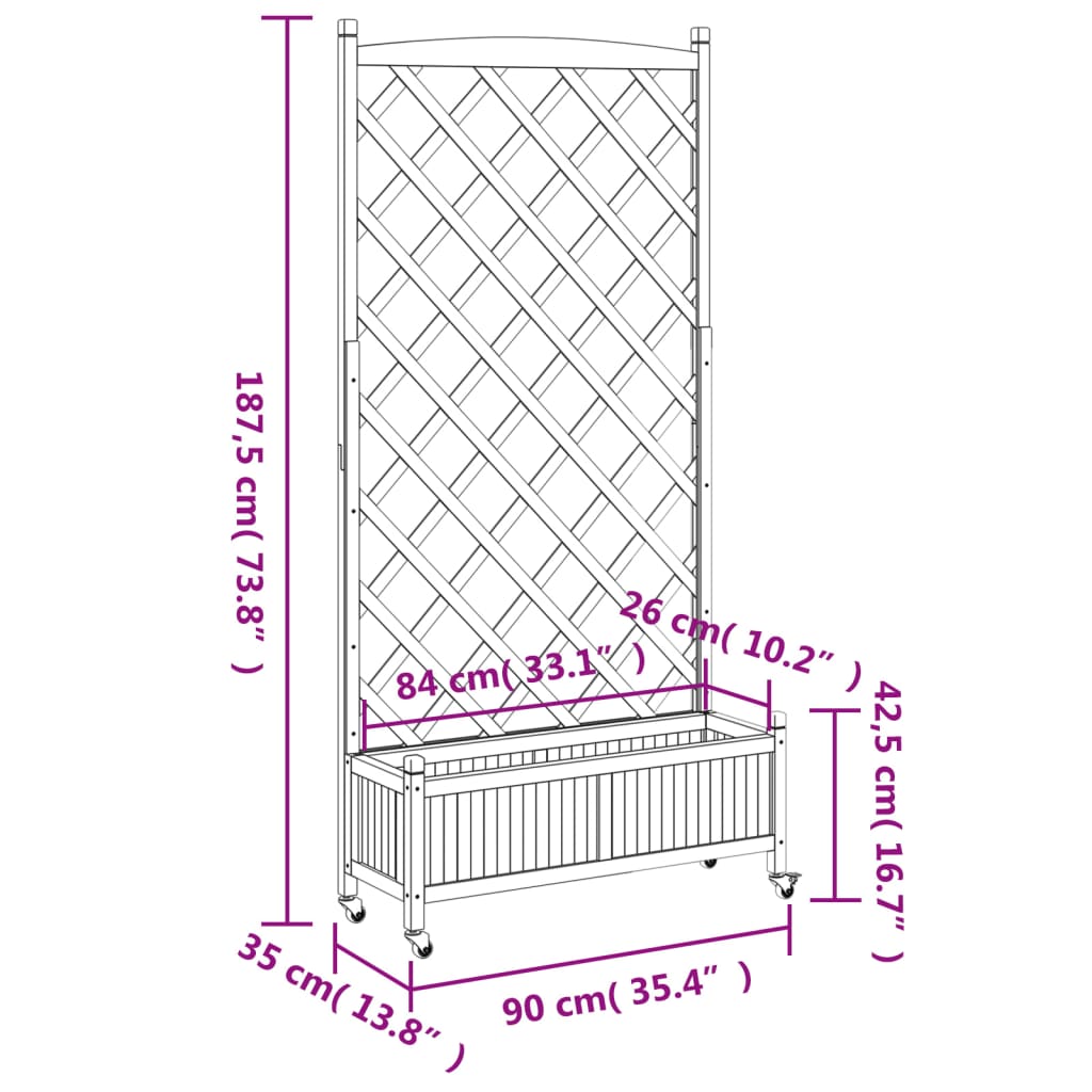Deze plantenbak met latwerk en wielen is een uitstekende keuze voor klimplanten in je tuin, op je terras of op je patio.