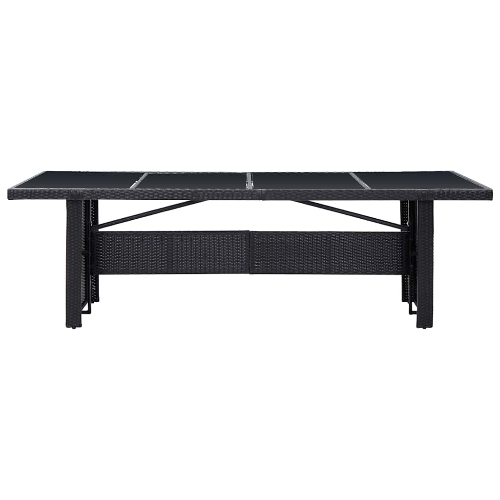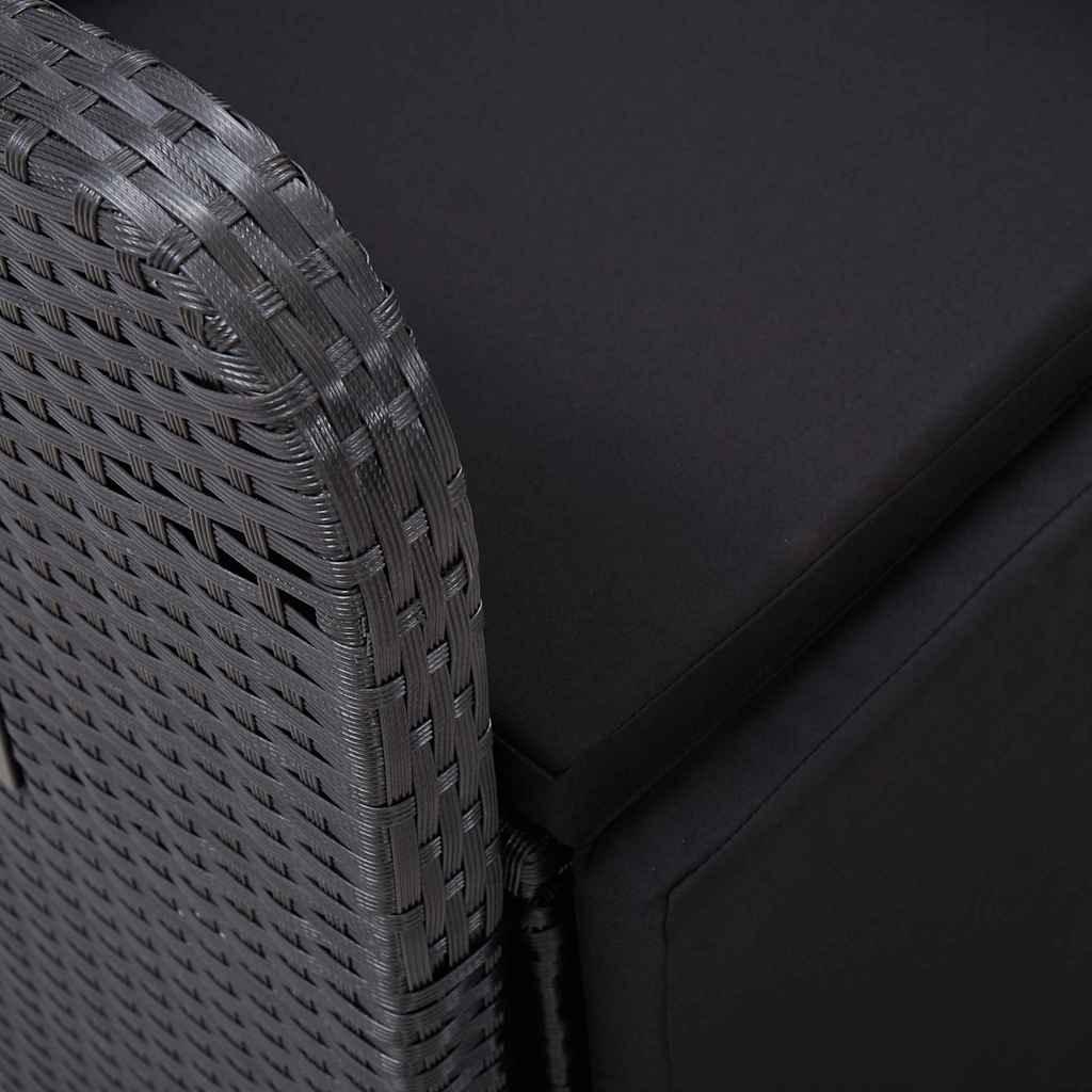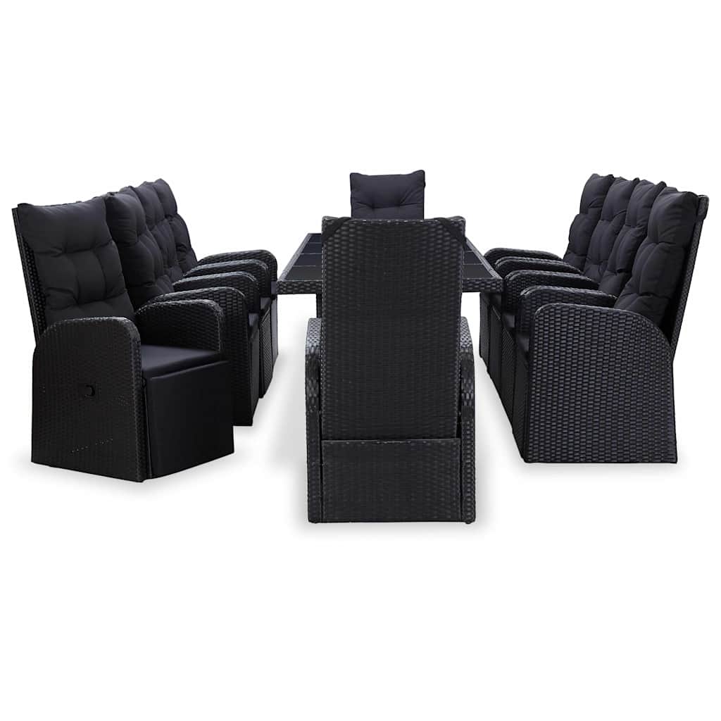 Deze moderne tuinmeubelset is een prachtige aanvulling voor elke buitenruimte. Het combineert stijl met praktische elegantie. Met veel aandacht voor detail heeft de set een ruime tafel en tien stoelen - acht standaard en twee verstelbare - die allemaal ontworpen zijn om indruk te maken. De mix van poly rattan, glas en gepoedercoat staal creëert een uitnodigende en verfijnde sfeer, perfect voor borrels of tuinfeesten. De strakke, donkere afwerking in combinatie met de comfortabele kussens geeft een chique uitstraling. Dankzij het minimalistische design is het perfect voor ontspanning of als je gasten ontvangt.