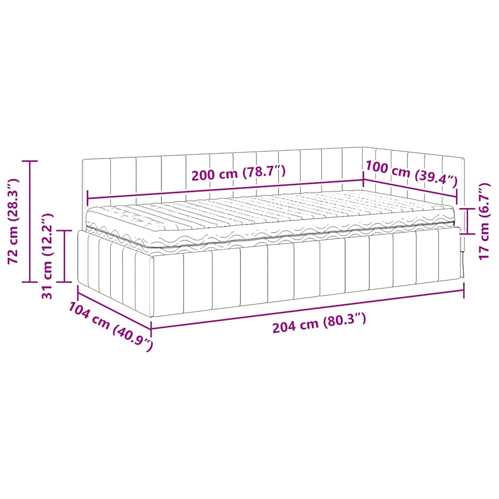 - Inclusief Componenten: Je krijgt een rechthoekig hoekbedframe en een comfortabele schuimmatras. Deze matras ondersteunt alle lichaamstypes goed, met een gemiddelde stevigheid die bij verschillende slaapposities past. Alles werkt perfect samen voor een geweldige nacht slaap.