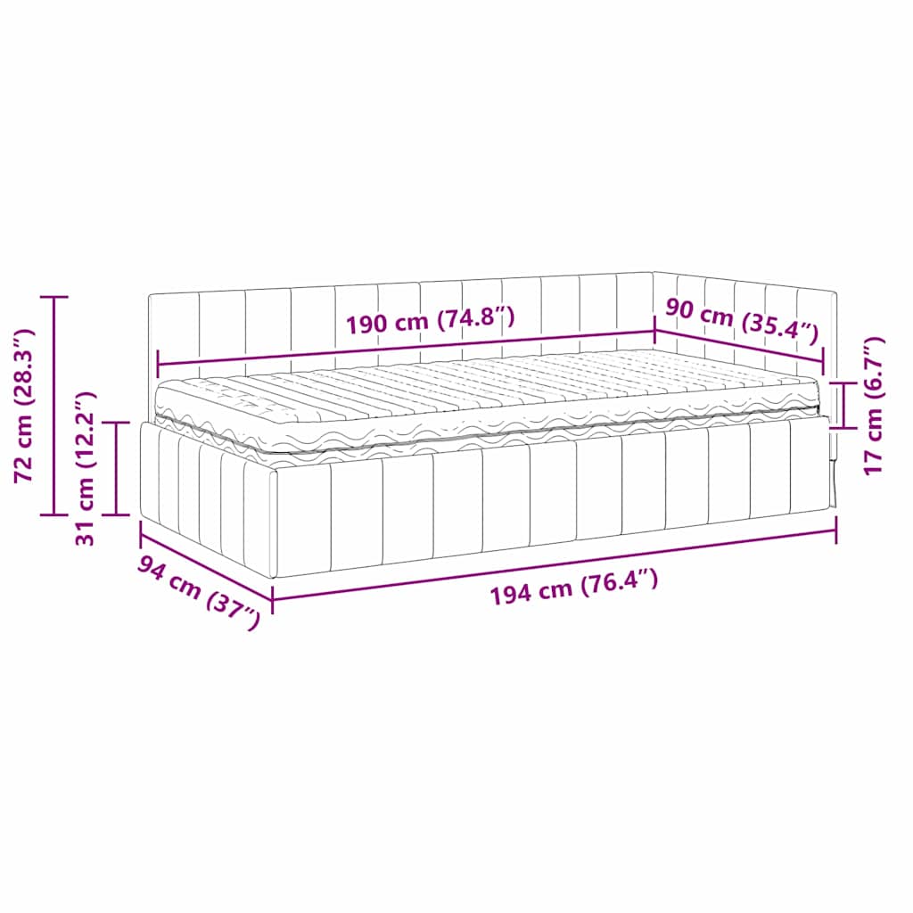 - Inclusief Componenten: Je krijgt een rechthoekig hoekbedframe en een comfortabele schuimmatras. Deze matras ondersteunt alle lichaamstypes goed, met een gemiddelde stevigheid die bij verschillende slaapposities past. Alles werkt perfect samen voor een geweldige nacht slaap.