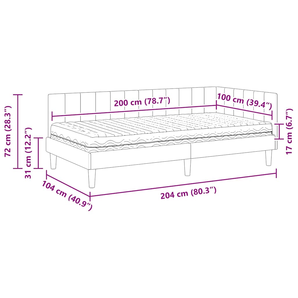 - Algemene afmetingen: 104 x 204 x 72 cm (B x L x H)