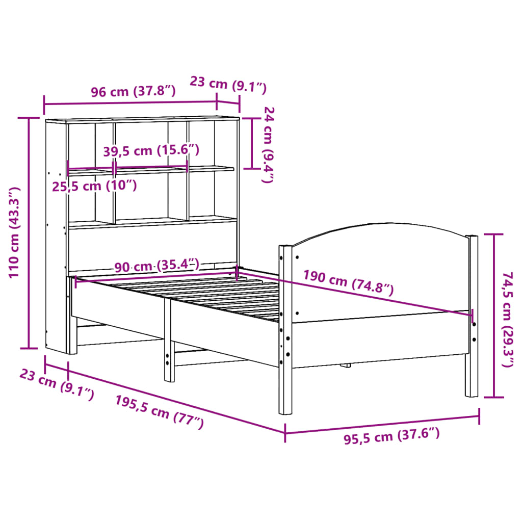 - Geschikte matrasmaat: 90 x 190 cm (B x L) (matras niet inbegrepen)
