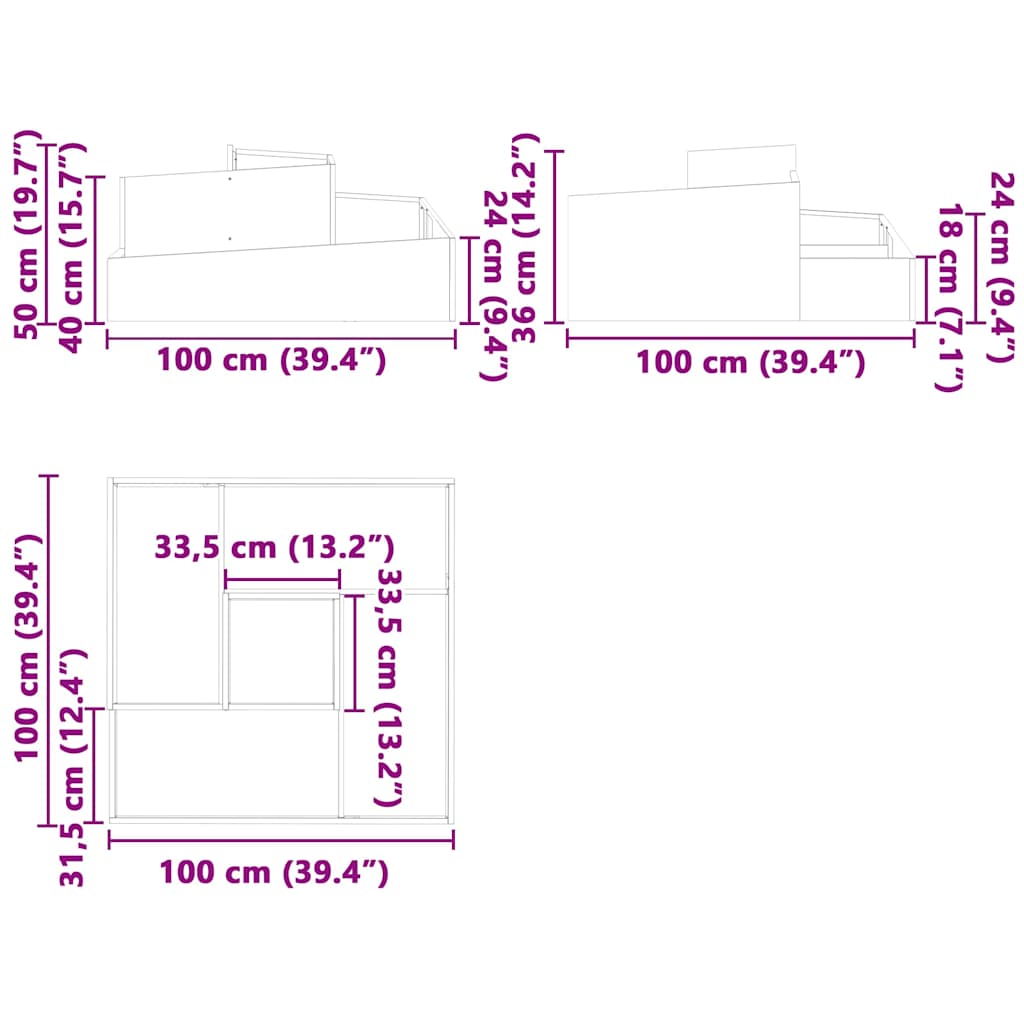 - Algemene afmetingen: 100 x 100 x 50 cm (L x B x H)