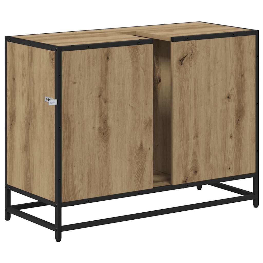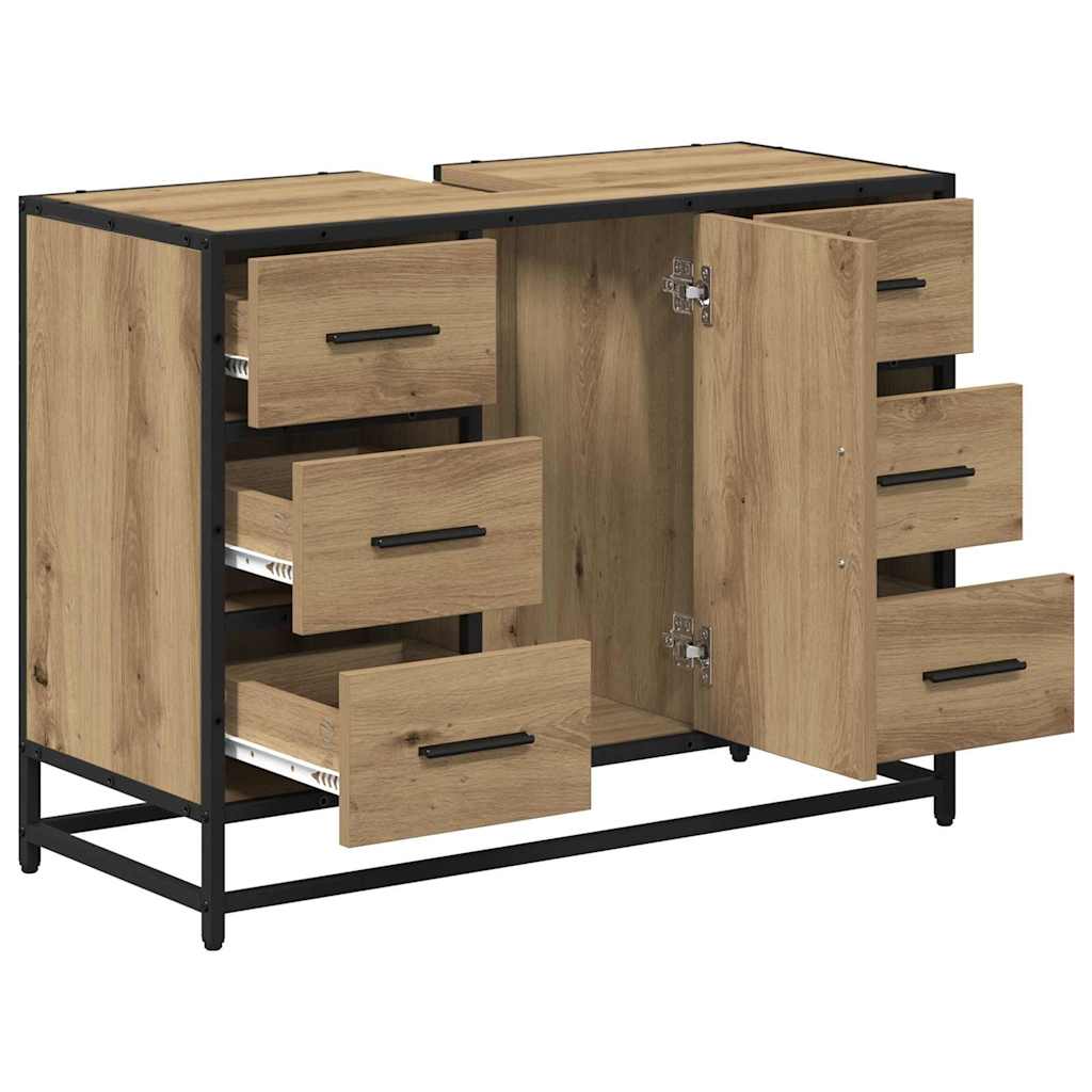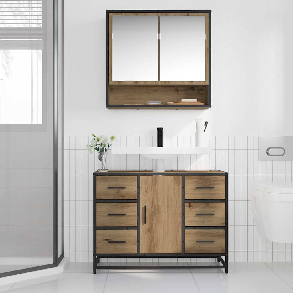 Deze Industrieel Badmeubelset is gemaakt van een opvallende combinatie van bewerkt hout en staal, waardoor je een stevig en stijlvol meubelstuk krijgt dat de ruige sfeer van stedelijke lofts en magazijnen vangt. Met afmetingen van 80 x 33 x 60 cm past het perfect in je badkamer en biedt het voldoende opslag zonder dat het te veel ruimte in beslag neemt. Het strakke ontwerp met zwarte accenten maakt het een mooie aanvulling voor moderne interieurs.