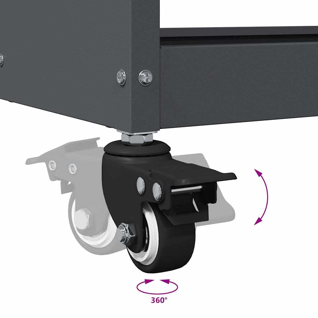 Deze stevige gereedschapskar combineert een coole industriële stijl met praktische functionaliteit. Perfect voor iedereen die georganiseerd wil zijn en iets degelijk zoekt. Door het koudgewalste staal is hij sterk en biedt hij veel opbergruimte. Dankzij de matte afwerking en de rechthoekige vorm past hij prima in garages of werkplaatsen. De wielen draaien 360°, wat het verplaatsen heel makkelijk maakt, en met de vergrendelbare wielen blijft hij staan waar je hem wilt.