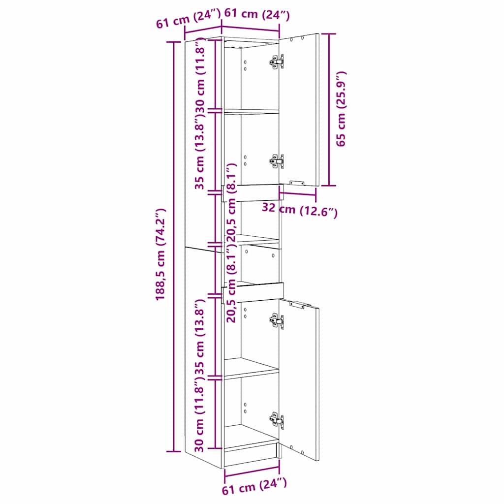- Algemene afmetingen: 32 x 34 x 188.5 cm (L x B x H)