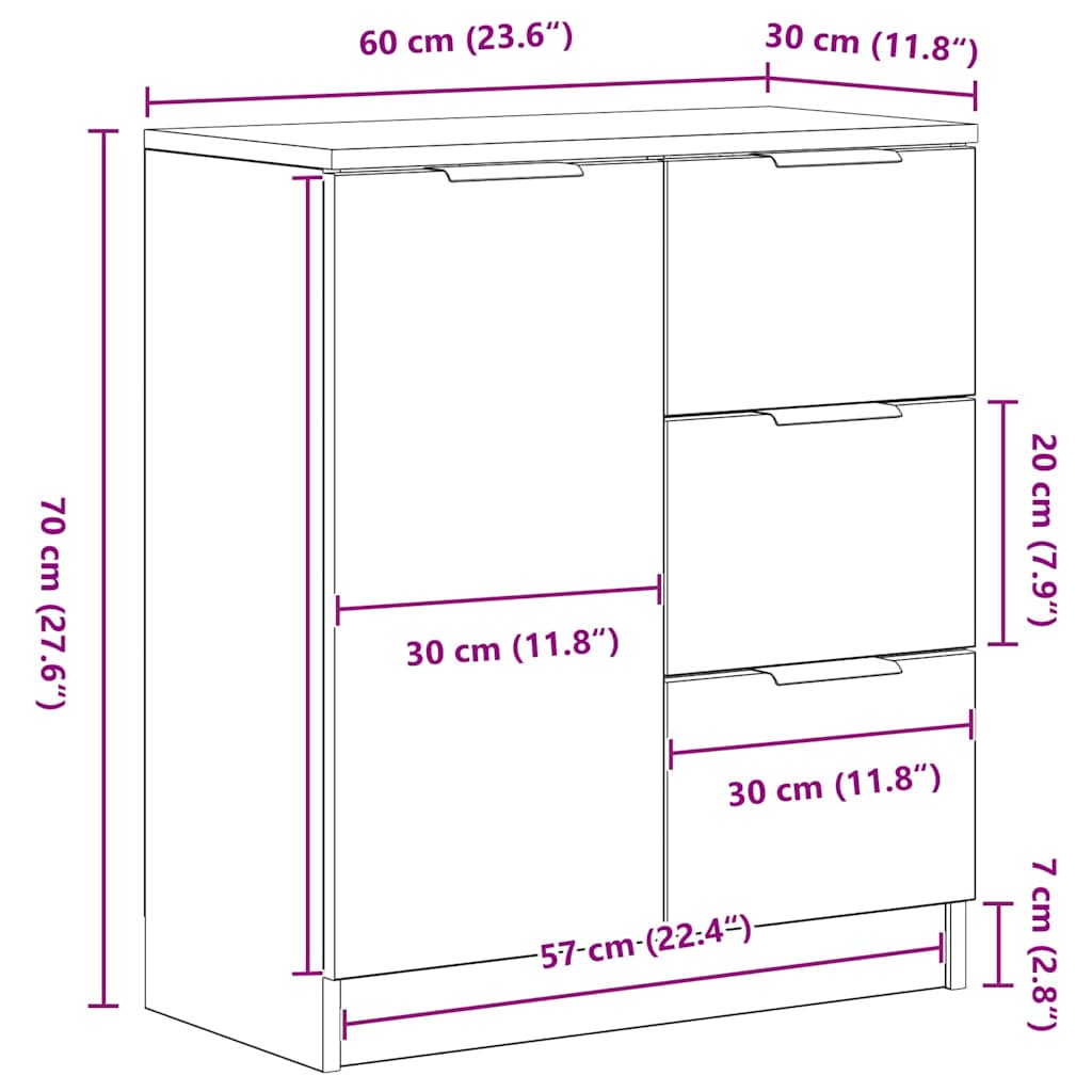 - Algemene afmetingen: 60 x 30 x 70 cm (L x B x H)