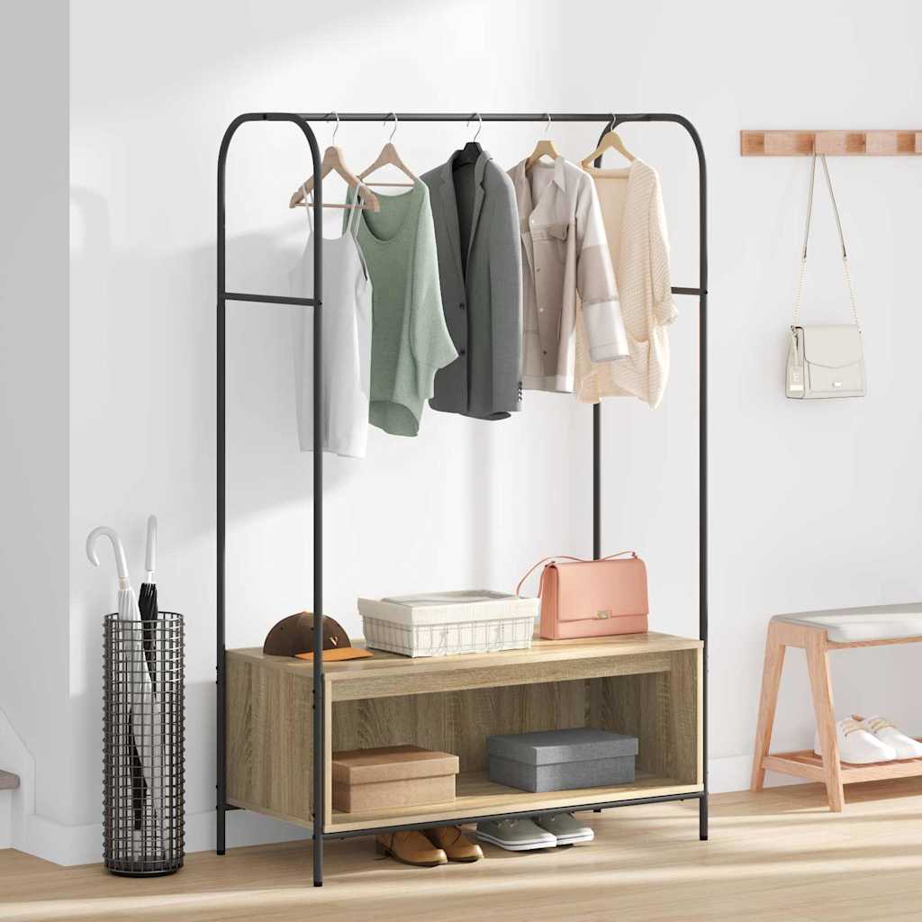 - Bewerkt Houten Frame Dit frame is gemaakt van bewerkt hout en biedt kracht en stabiliteit, zodat het verschillende kledingstukken kan ondersteunen. De natuurlijke afwerking sluit mooi aan bij moderne ruimtes en geeft je huis een warme uitstraling.