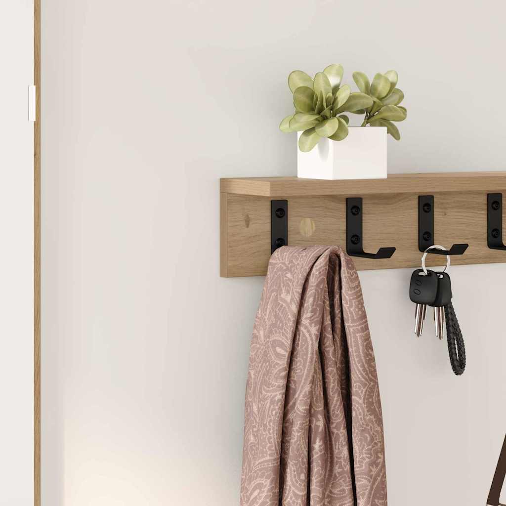 - Doordachte Onderdelen: Voorzien van robuuste metalen haken, biedt dit ontwerp ruimte voor verschillende items zoals kleding, hoeden, handtassen of sleutels. Het goed geïntegreerde plankje voegt een extra laag opslagversatility toe, waardoor dagelijkse organisatie gemakkelijker wordt terwijl het de functionele flexibiliteit van de kapstok vergroot.