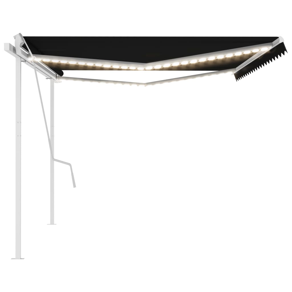 Deze buitenluifel heeft een roestbestendig, gepoedercoat aluminium frame waardoor hij lichtgewicht en toch stevig is. De sterke ijzeren palen maken het geheel stabiel. Het zonnescherm is gemaakt van polyester met een hoge dichtheid en een PU-coating, waardoor het uv- en waterbestendig is. De hoek en hoogte kunnen worden aangepast aan je specifieke behoeften. Je kan de luifel openen en intrekken met de lange handslinger. De solar LED''s bieden je ''s nachts energie-efficiënte verlichting.