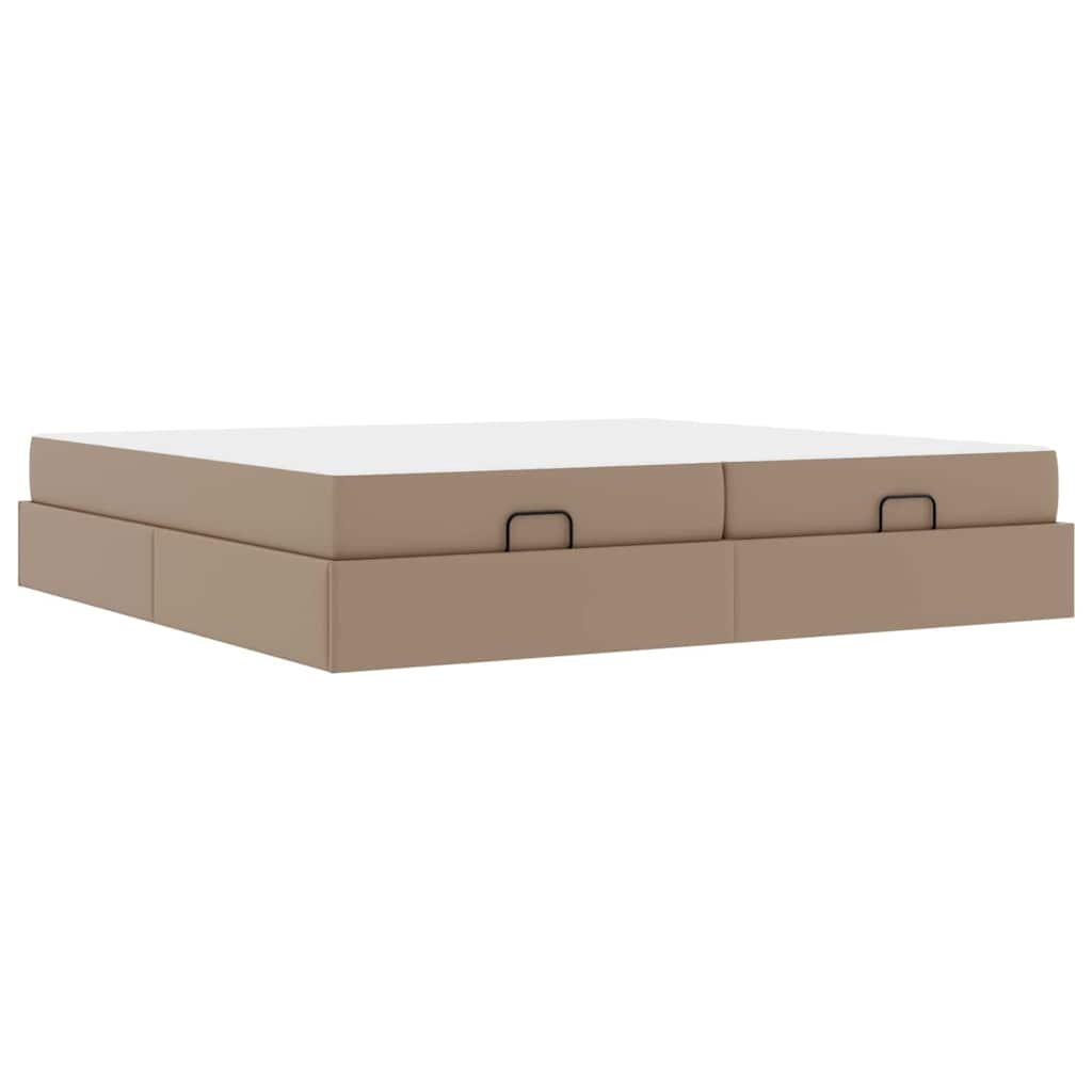 Dit moderne bedframe met matras heeft een slimme en strakke vormgeving, perfect voor moderne slaapkamers. Het is ontworpen voor een minimalistische sfeer en past makkelijk in elke inrichting, met een leuk vleugje eenvoud. Het is ideaal voor iedereen die zowel stijl als praktische gebruiksvriendelijkheid zoekt in zijn slaapomgeving, omdat het comfort combineert met handige opslag onder het bed. De gladde faux leren afwerking voegt een beetje elegantie toe, wat zorgt voor een ontspannen sfeer, perfect voor een goede nachtrust.