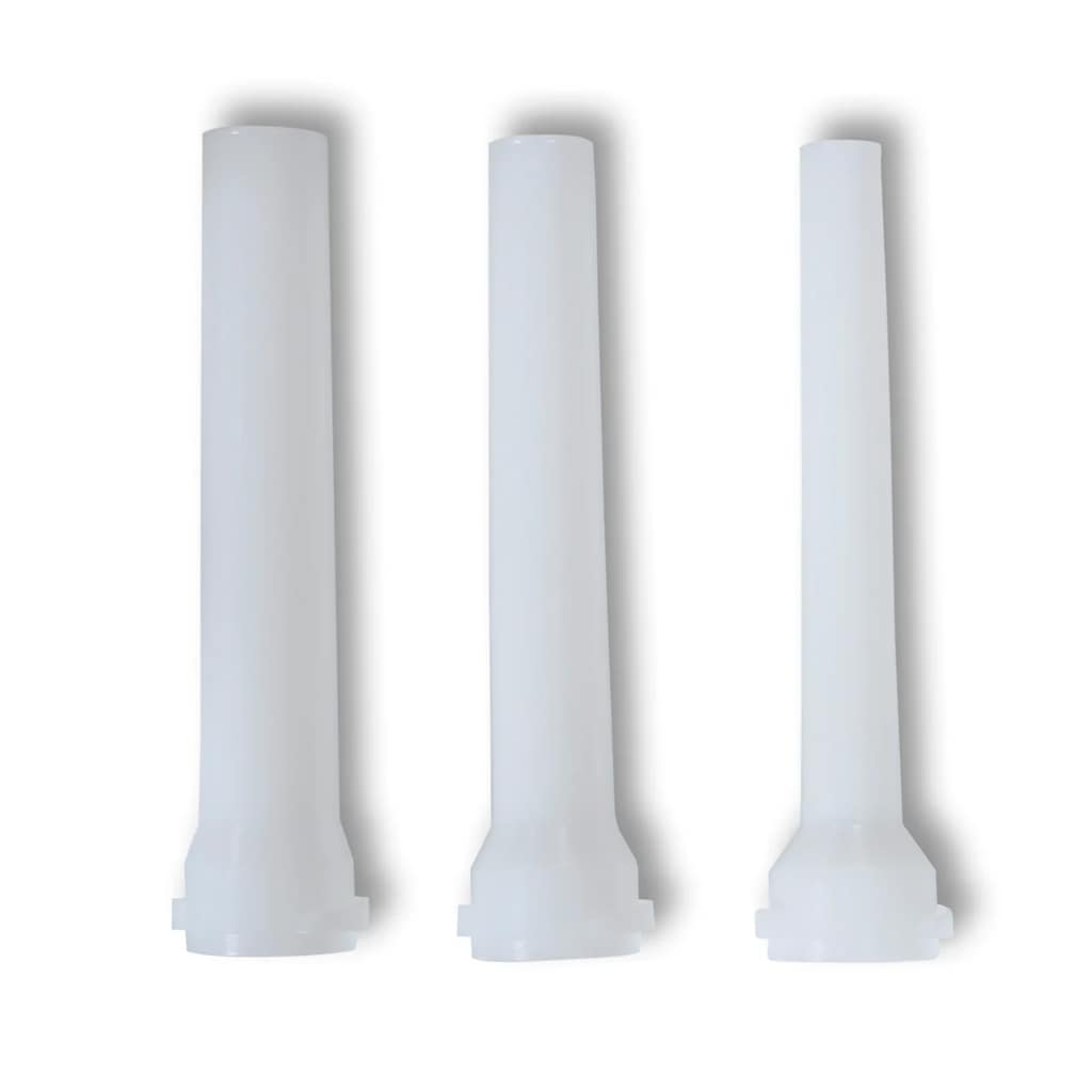 Deze handmatige worstmaker/vuller wordt geleverd met drie trechters/mondstukken voor het maken van worsten van verschillende groottes.