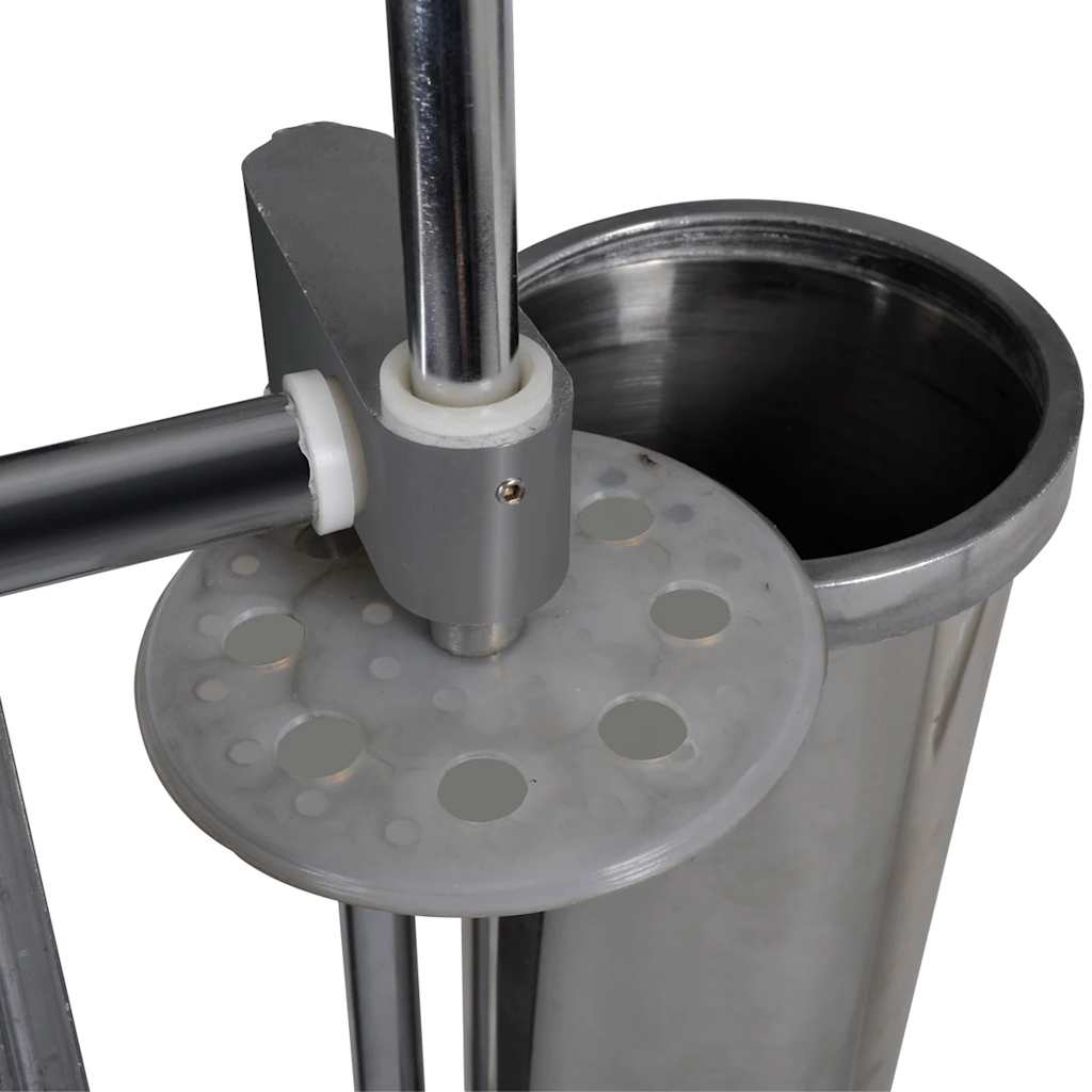 De ergonomisch ontworpen slinger draait moeiteloos. Deze vulmachine heeft een klemmechanisme, zodat hij gemakkelijk aan elk aanrecht tot 5,5 cm dik kan worden bevestigd.