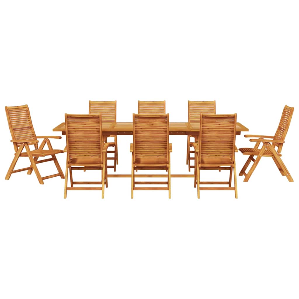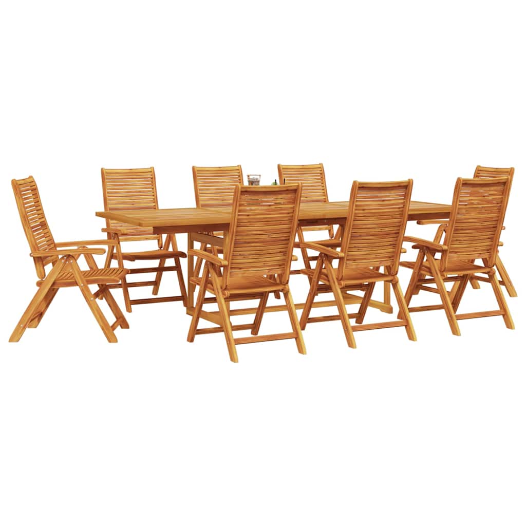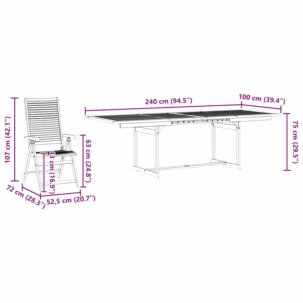 - Comfortabele Armleuningen Voorzien van gladde acaciahouten armleuningen, is elke stoel ontworpen voor ultiem comfort. De armleuningen bieden een ondersteunende en ontspannende ruimte voor je armen, waardoor lange maaltijden en ontspannen buiten zitten nog aangenamer worden. Ze voegen gemak toe aan je tuinsetting en verhogen de algehele eetervaring.