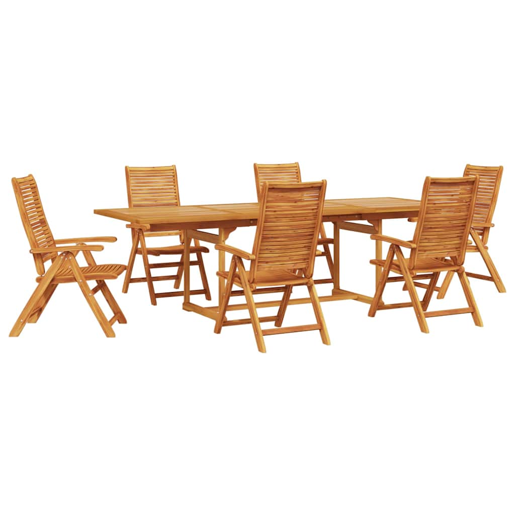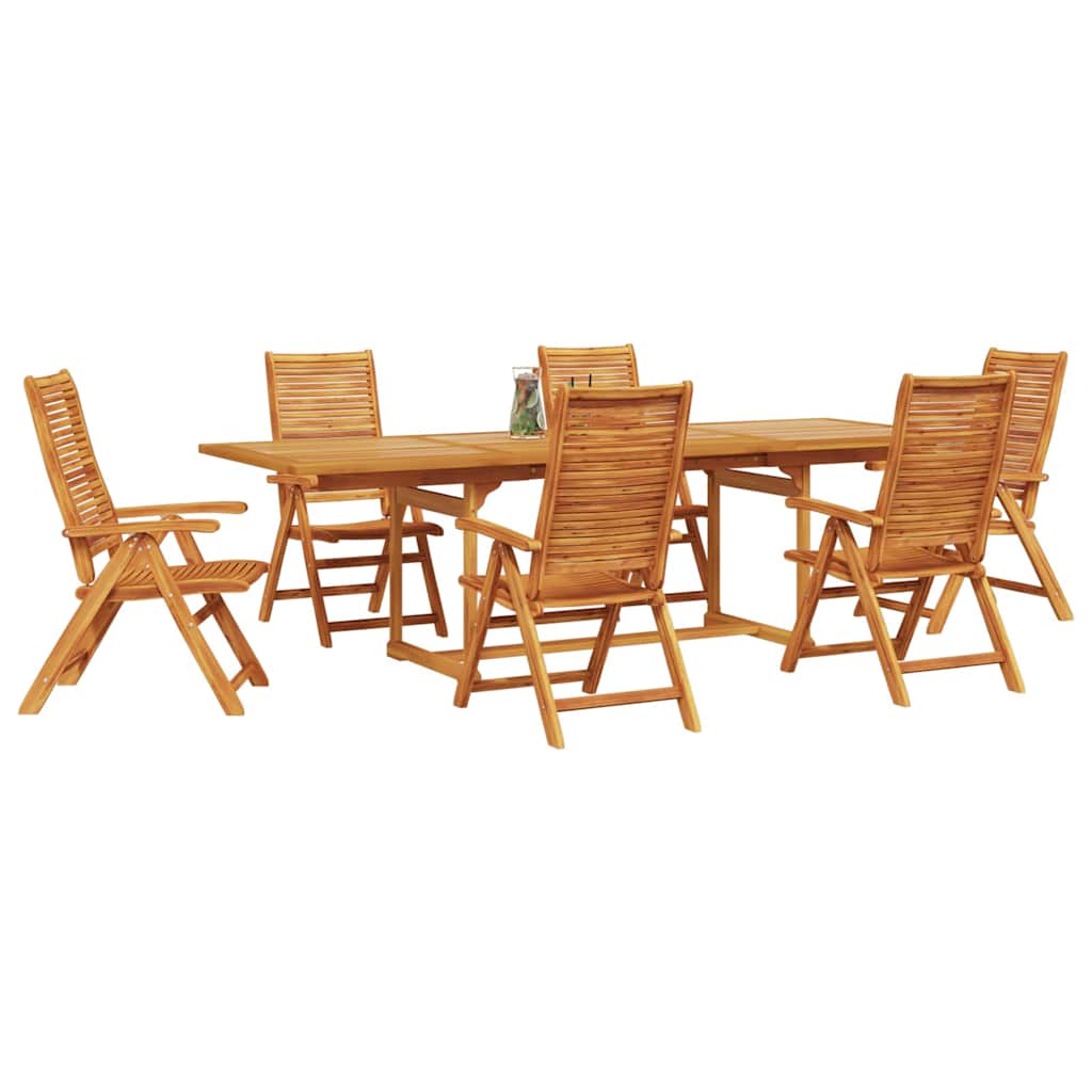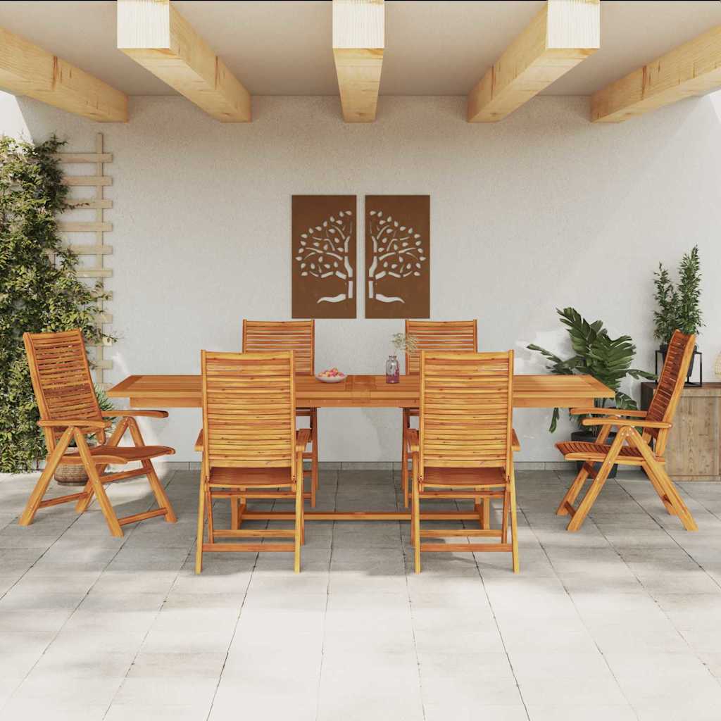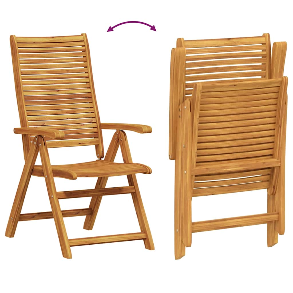 - Comfortabele Armleuningen Voorzien van gladde acaciahouten armleuningen, is elke stoel ontworpen voor ultiem comfort. De armleuningen bieden een ondersteunende en ontspannende ruimte voor je armen, waardoor lange maaltijden en ontspannen buiten zitten nog aangenamer worden. Ze voegen gemak toe aan je tuinsetting en verhogen de algehele eetervaring.