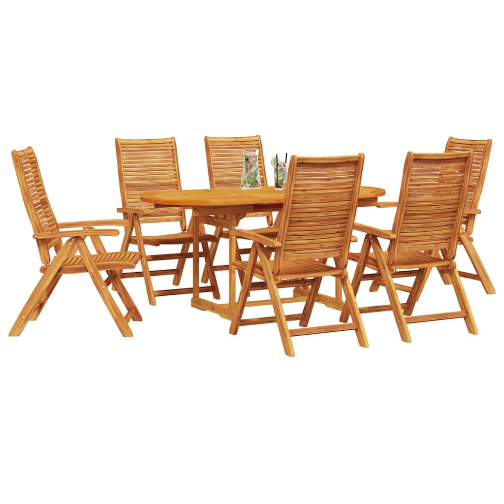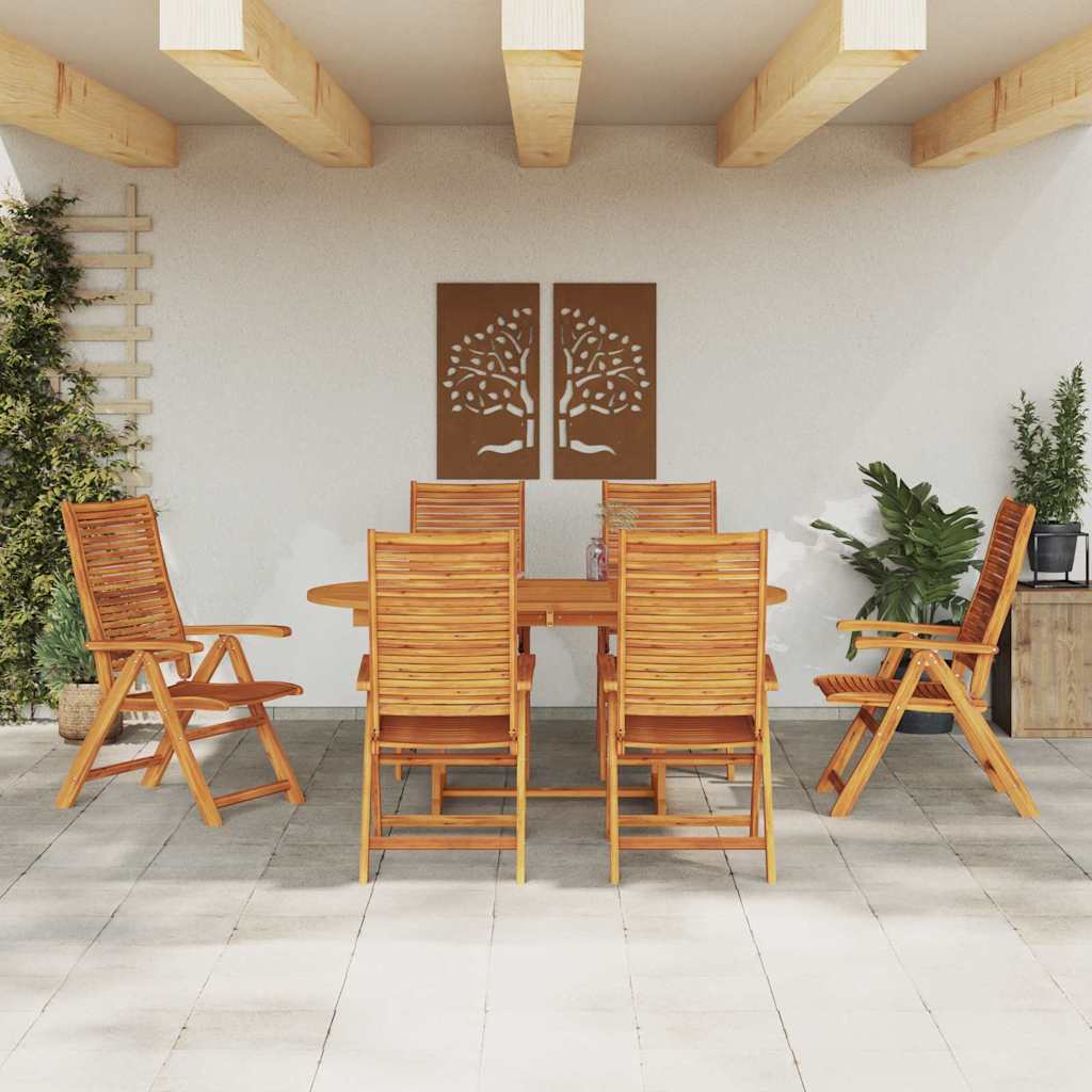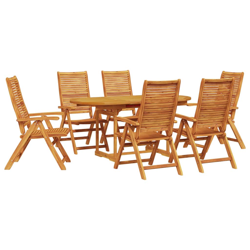 - Materialen: De set is gemaakt van Massief acaciahout, beroemd om zijn duurzaamheid en prachtige afwerking. De geoliede behandeling versterkt de natuurlijke kleur en beschermt tegen vocht, wat zorgt voor langdurigheid en schoonheid.