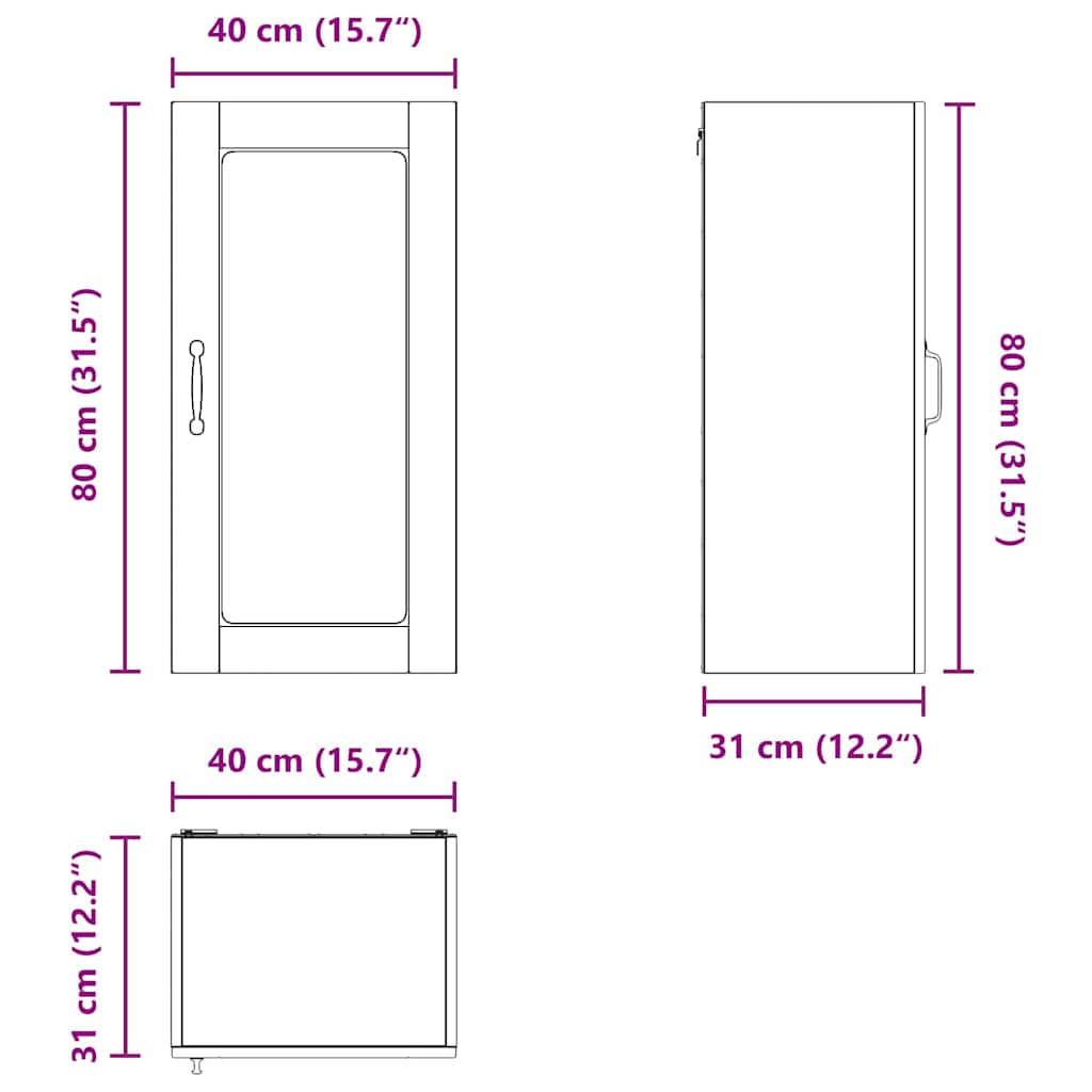 - Algemene afmetingen: 40 x 31 x 80 cm (L x B x H)